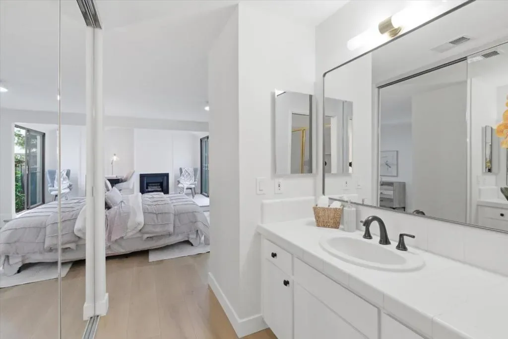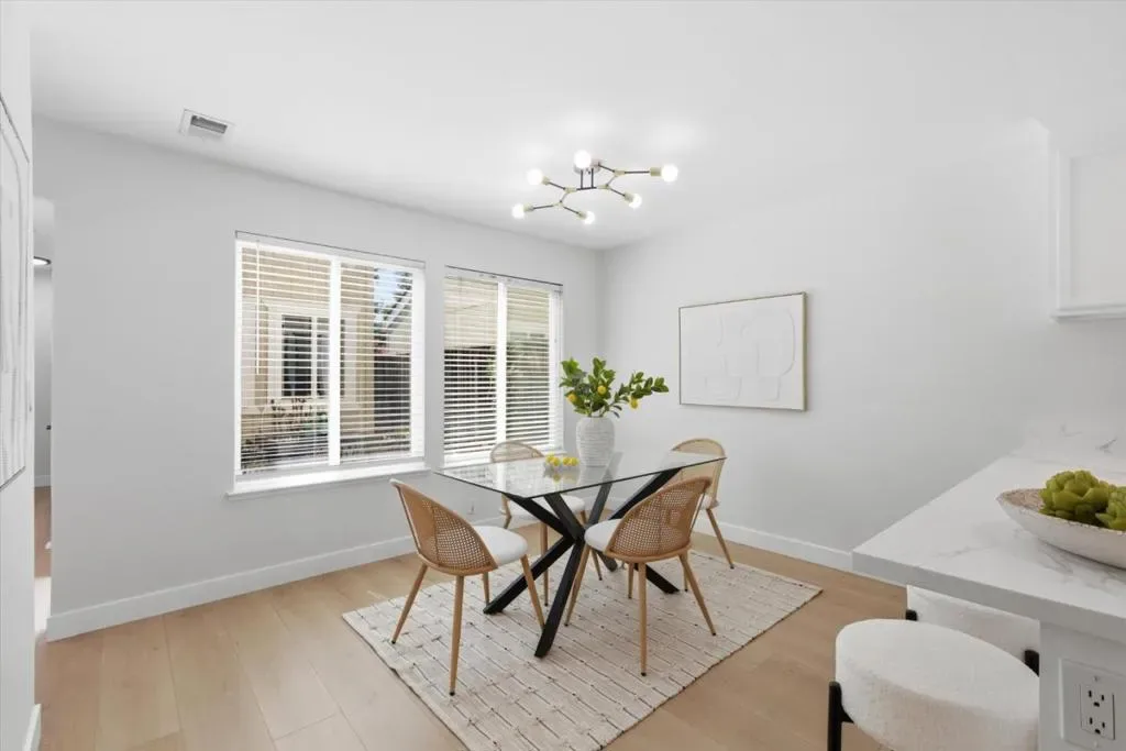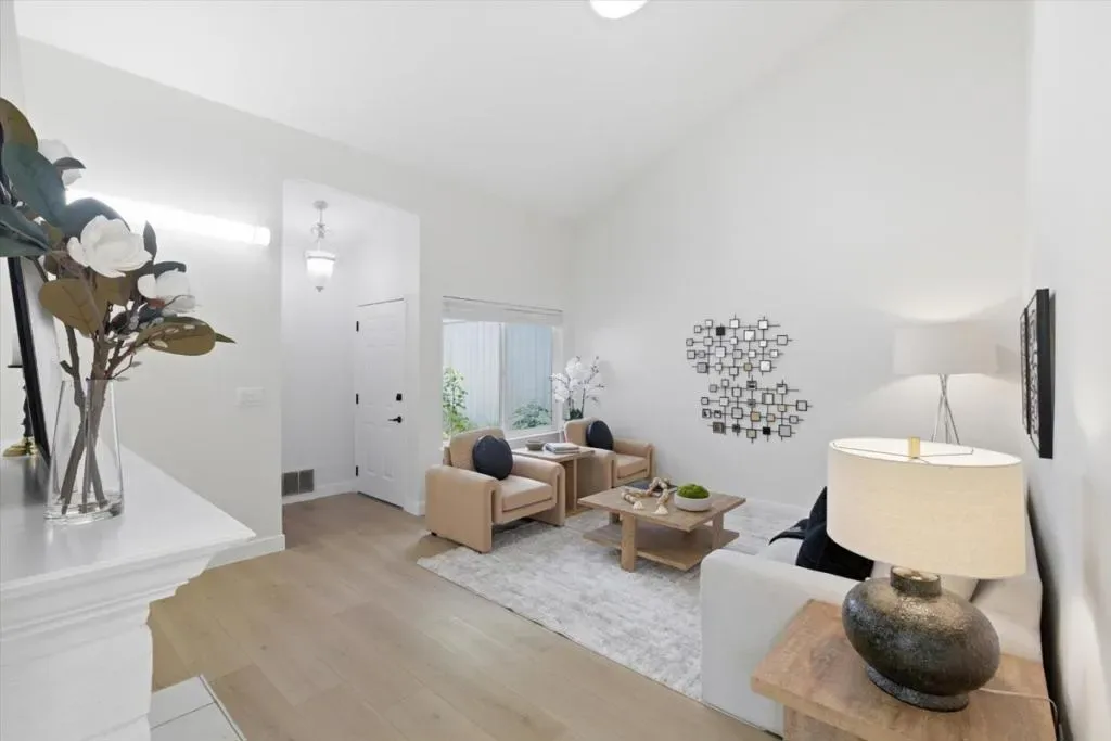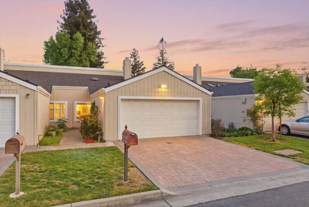 Lives Like a Cupertino Single Family Home – 1313sf ALL ON ONE LEVEL with Wrap Around Yard & Extraordinary Primary Retreat Featuring a Private Bonus Room, Ideal for Office, Nursery, or Lounge. Nestled within a Quiet & Serene Residential Enclave Opening to Lush Common Greens. The Best in Academics with Stevens Creek Elem, Kennedy Middle & Monta Vista High A rare opportunity offering space, privacy, & seamless indoor outdoor living in a highly desirable Cupertino setting. The main living areas showcase soaring vaulted ceilings, abundant natural light, and a fluid layout designed for everyday living & entertaining. Remodeled modern farmhouse inspired kitchen features white shaker cabinetry, quartz counters, stainless appliances, & a breakfast bar overlooking the central living spaces. The expansive primary retreat is a true highlight, complete with a private bonus room, fireplace & direct slider door access to the backyard. A modern conveniences throughout: gleaming wood like plank floors, dual pane windows, interior laundry, & central heating and AC. Enjoy lush wrap around gardens with blooming flowers and direct access to a park like greenbelt. Enjoy the beauty of the foothills with Silicon Valley at your fingertips! Whole Foods, Memorial Park, De Anza College! Welcome Home!