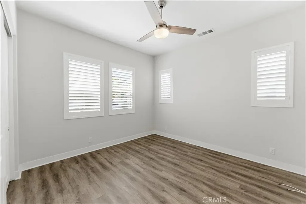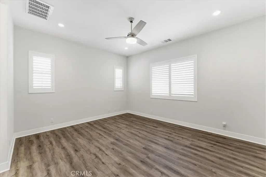 Welcome to Ovation at Flora Park, where resort-style living meets modern comfort in this beautifully upgraded single-story home. Offering 3 bedrooms and 2.5 bathrooms, this desirable single story floorplan provides both functionality and flexibility for everyday living. The open-concept layout is enhanced by luxury vinyl plank flooring, plantation shutters, and abundant natural light. The kitchen serves as the heart of the home, featuring quartz countertops, a spacious eat-at island, ample cabinetry, and a walk-in pantry—ideal for both daily living and entertaining. The living and dining areas flow seamlessly and extend to an enclosed outdoor patio, creating a private space perfect for relaxing or hosting year-round. The primary suite offers a peaceful retreat with a spa-inspired bathroom and generous closet space, while two additional bedrooms provide versatility for guests, a home office, or hobbies. Additional features include a full laundry room with built-in cabinetry, direct-access two-car garage, and a custom outdoor irrigation system, along with quality upgrades throughout. Residents enjoy access to Flora Park’s resort-style amenities, including a pool, spa, fitness center, pickleball courts, and clubhouse—all within a vibrant 55+ community. A wonderful opportunity to own in one of Cypress’s most sought-after neighborhoods.