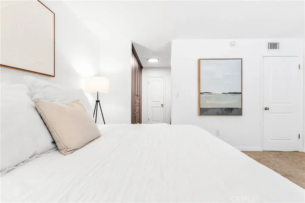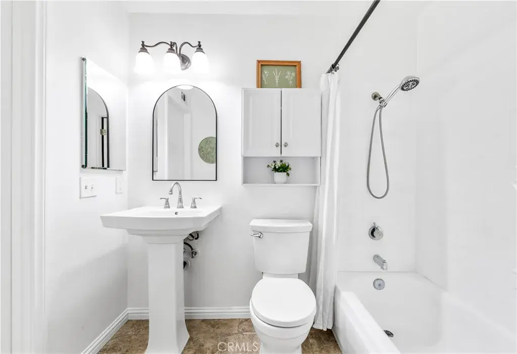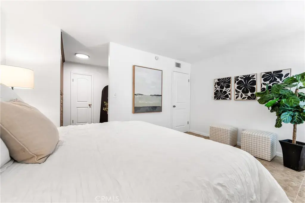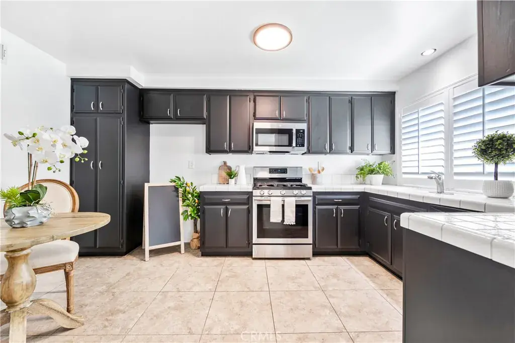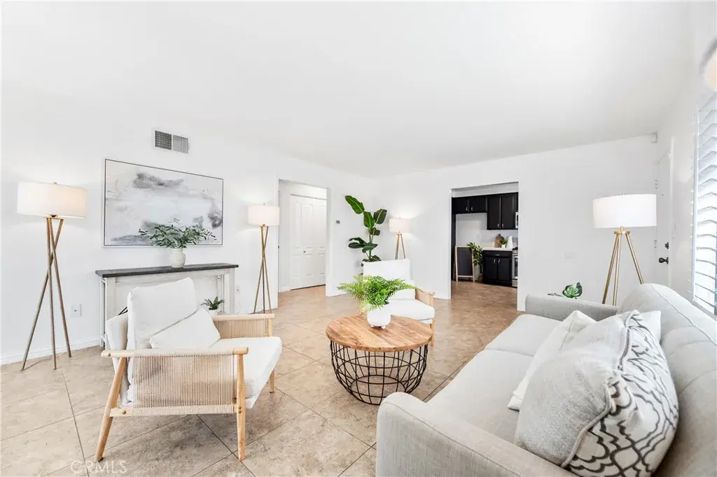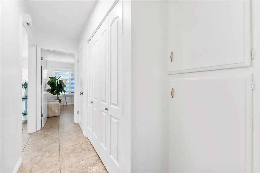 Perched on a greenbelt within the highly desired community of Cypress Village, this charming 2 bedroom, 2 bathroom, end unit, offers two extra large primary ensuite bedrooms and endless upgrades. This S&S built townhome has been meticulously upgraded with thoughtful renovations and modern improvements. This residence blends timeless appeal with contemporary comfort, energy efficiency, and low-maintenance living. Discover the open and inviting living room featuring 20×20 porcelain tile flooring throughout the entire home. Freshly painted walls, smooth ceilings, updated 2-panel Roman interior doors. The spacious living room is bathed in natural light flowing in from the dual pane white vinyl French door and dual sidelites. The energy efficient windows are complemented by premium Woodlore plantation shutters that include lifetime limited warranty. The open concept living room is complete with a gas fireplace as the focal point. The kitchen is on trend in a black and white color scheme and includes a recently installed dishwasher and above range microwave. Energy-efficient and quiet living is ensured by a Daikin high-efficiency HVAC system with newly installed ductwork and a Honeywell WiFi touchscreen thermostat and paired with NEW TAP fire-resistant insulation in the attic. Both bathrooms have been beautifully remodeled with the installation of new porcelain pedestal sinks, Delta shower faucets and heads, frameless beveled medicine cabinets, new light fixtures, and shower tub reglaze. The spaciousness in the bedrooms are complemented with a $20,000 investment in custom California Closets providing optimized storage, and aesthetic enjoyment. The Noritz tankless water heater creates peace of mins with endless hot water. Ample parking is available on the street in front of the home, guest parking stalls and within the 2 car garage boasting a newer fiberglass garage door and Liftmaster opener and direct access to the backyard. The backyard provides plenty of room for relaxing or entertaining. Adorned with low-maintenance synthetic grass turf, a newly installed block wall and planter wall, a freshly painted and recently installed patio cover, and secure access via an upgraded back gate. HOA ammentities include 3 pools, tennis court and a clubhouse. Attending top rated schools 10 out of 10 schools… Patton Elementary, Bell Intermediate and Pacifica High School! Don’t miss the opportunity to own a property where every detail reflects pride of ownership!