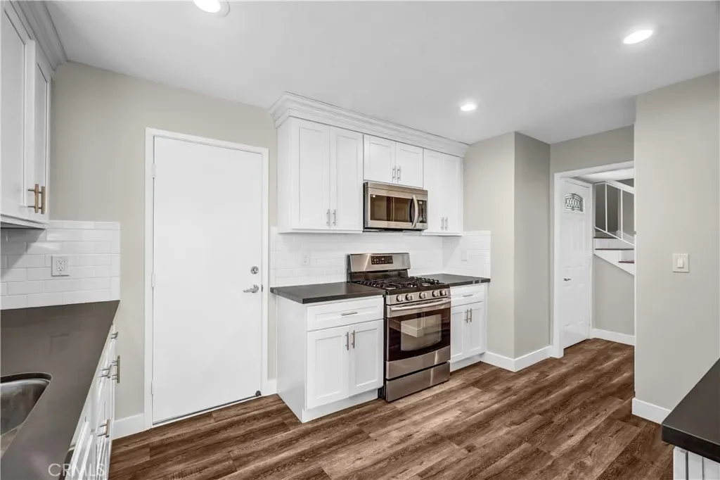 Major upgrades completed in 2018 include a fully remodeled kitchen and bathrooms, featuring timeless white shaker cabinetry and sleek quartz countertops. The kitchen shines with a classic subway tile backsplash and stainless steel appliances, while the bathrooms offer elegant, ceiling-height tiled surrounds for a modern, spa-like feel.