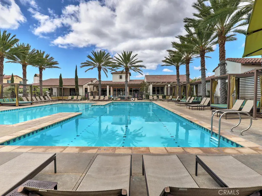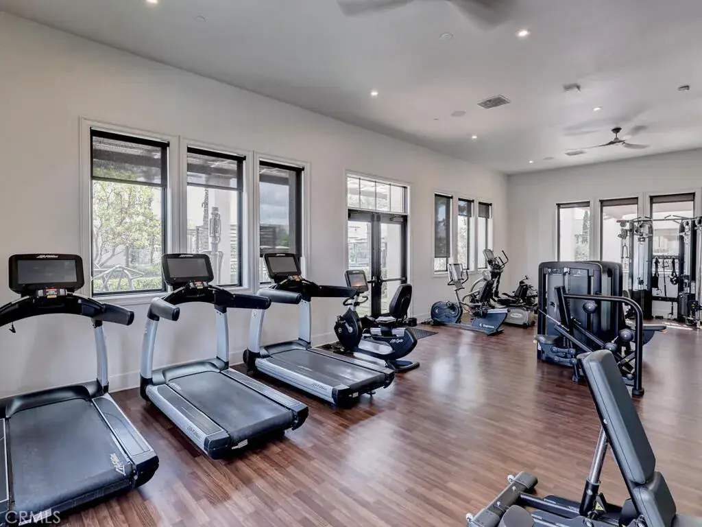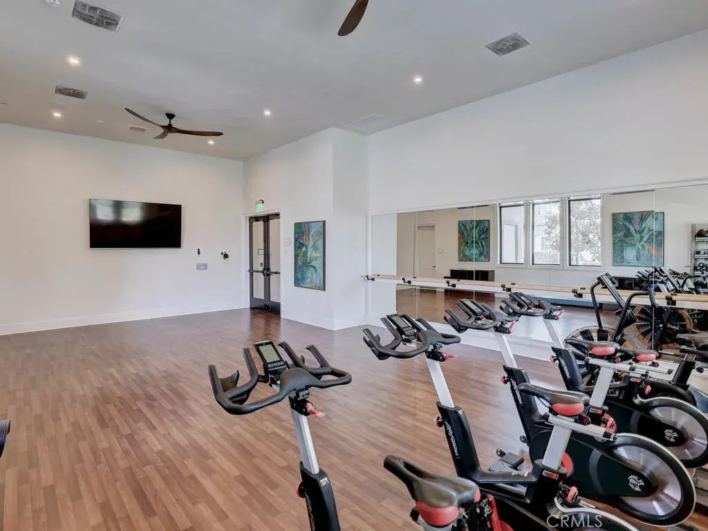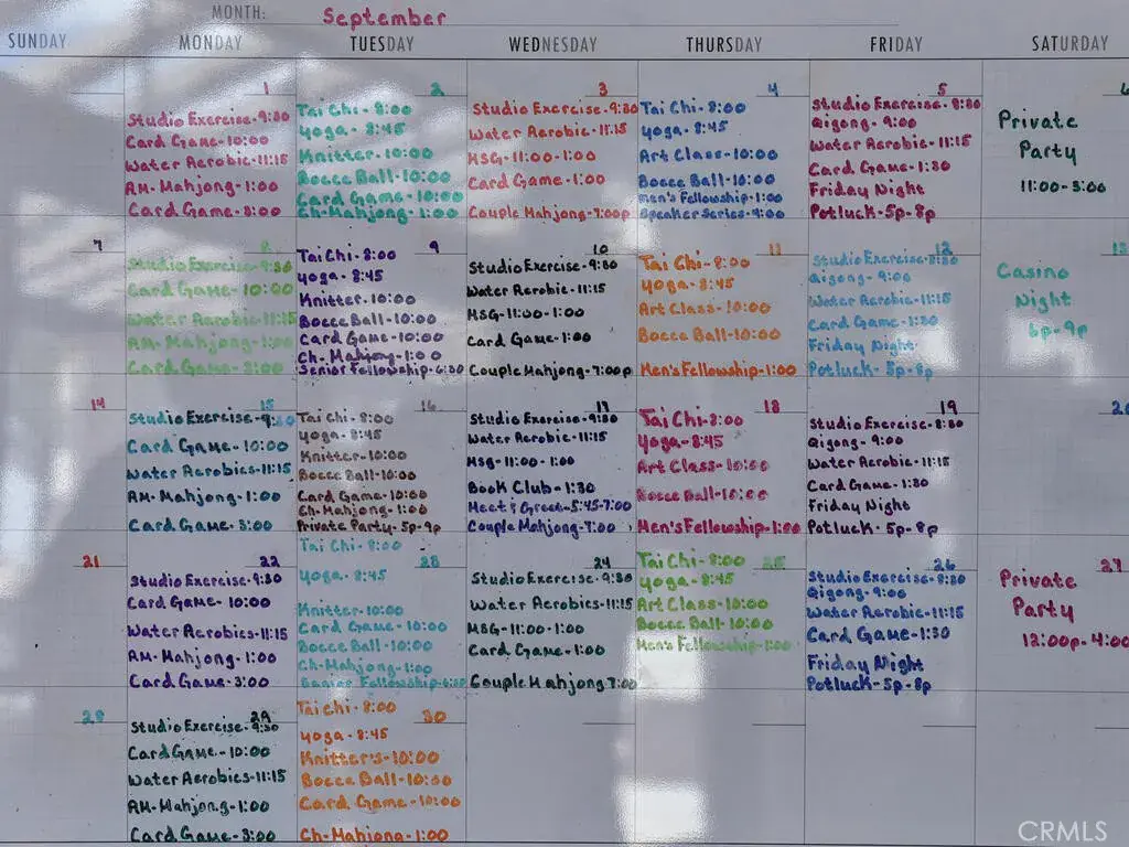 The community amenities truly feel like a luxury resort. The low association fee includes a sparkling pool, oversized in-ground jacuzzi, cabanas with charging stations, a fully equipped gym, yoga studio, banquet hall with full kitchen (available to rent), outdoor firepit and fireplace, outdoor TV, pickleball, bocce ball, pool table, and a full calendar of classes, events, and social gatherings. The community events board truly reads like a resort schedule.