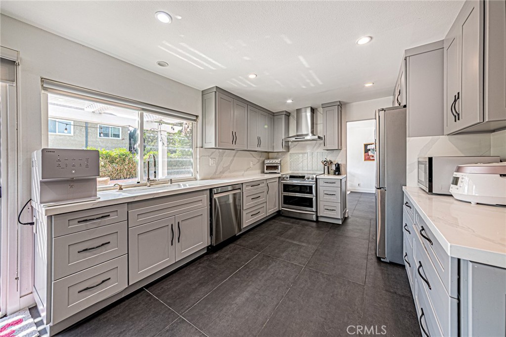 Welcome to this stunningly remodeled split-level masterpiece in the highly sought-after Greenbrook community of Cypress. From the moment you step through the elegant double-door entry, you are greeted by an open and airy architectural design featuring soaring vaulted ceilings and dramatic dark wood beams. This home underwent extensive renovations in 2019 all performed with full city permits featuring a complete chef’s dream kitchen remodel with sleek quartz countertops, contemporary grey shaker cabinetry, professional-grade stainless steel appliances, and premium oversized ceramic tile flooring throughout the lower level. The property’s infrastructure was also significantly upgraded in 2018, including professional asbestos removal and the replacement of old galvanized piping with modern flex piping for ultimate peace of mind. The seamless flow leads to a sun-filled living area highlighted by stylish wrought iron railings and designer lighting. A portion of the garage has been thoughtfully and legally converted into a functional, fully-permitted bonus room ideal for a home office or gym. Added interior comfort includes a high-quality whole house water filtration/softener system. Retreat to the private backyard oasis with an Alumawood patio cover and custom fire pit. Location is everything within walking distance to the prestigious, nation-ranking Oxford Academy. This home is equipped with solar panels for energy efficiency (Solar lease to be assumed by buyer). Additional highlights include updated recessed lighting and modern dual-pane windows. With every upgrade meticulously permitted, this is a rare opportunity to own a worry-free, modern luxury home in a world-class school district!