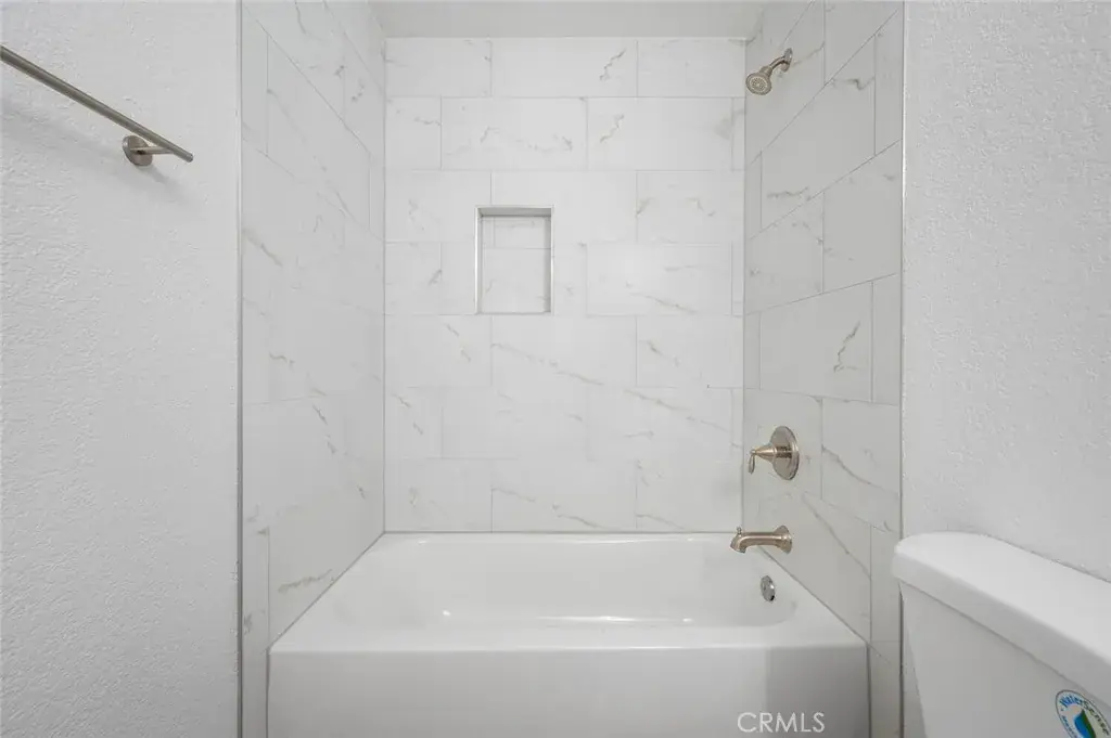 Completely remodeled 2 bedroom 2 bath upstairs apartment with air conditioning, with a 2 car garage with new doors and openers. The apartment has been upgraded with vinyl flooring throughout, new custom kitchen cabinets, new quartz countertops, all new appliances (stove, dishwasher, microwave). Brand new bathtubs and tiled showers, new vanities, new mirrors and all new fixtures in both bathrooms. The electrical has been updated with all new switches and outlets, new recessed lighting, and new ceiling fans. The exterior building has been updated and recently painted.