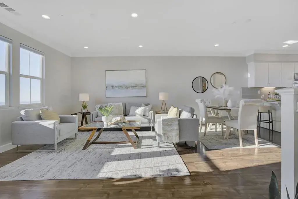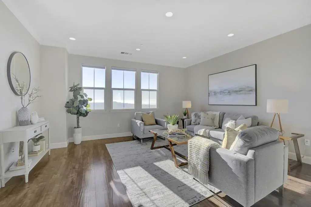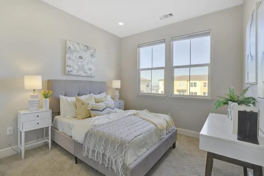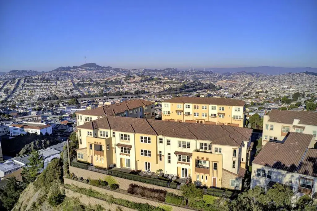 Desirable and rare 4-bedroom, 3-bath residence in a private gated community built in 2017. This bright, modern home feels like a single-family residence with no one above or below, an attached 2-car garage with EV-charger hookup and breathtaking, unobstructed western views. The main level offers a flexible 5th bedroom, office, or great room option that opens to a private patio, perfect for enjoying sunset & city views. Lovingly maintained by the original owners, this move-in-ready home features a modern open floor plan, spacious living/dining combo with wood flooring, high ceilings, and abundant natural light with views from every window.Open chefs kitchen with plentiful cabinetry, stainless steel appliances & stone countertops. A full bath and guest bedroom complete the main level. Upstairs includes 3 Bdrms, including a primary suite with walk-in closet and an updated spa-like bath featuring an oversized shower & soaking tub, a laundry area with washer and dryer, and a full guest bath. Additional features include dual-pane windows, central A/C/heat, high ceilings, and plenty of guest parking. Ideally located in a quiet, retreat-like neighborhood with low HOA dues, stunning city views, and convenient access to BART, SFO, shopping, restaurants, Highways 101 & 280 & more.
