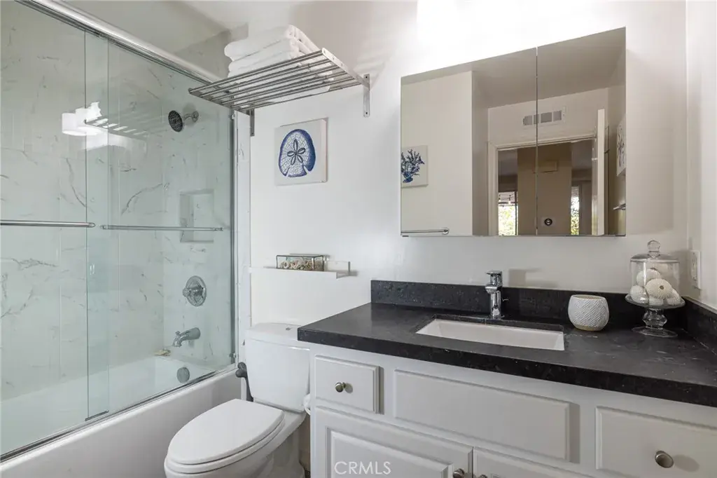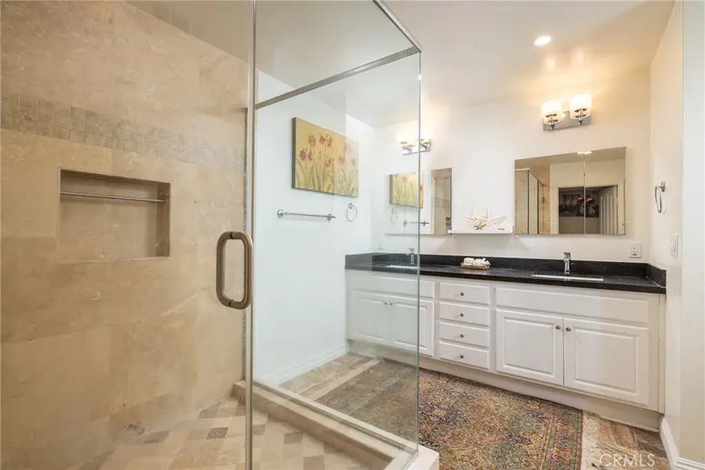 This reimagined property is perfect for the most discerning resident. When first entering this gorgeous home, you will see the new 25-inch tile flooring, which will remind you of Roman luxury living on the Via Veneto. A redesigned fireplace with jaguar green rectangular tile adds an elegant pop of color. The kitchen, with its Blue-Louise Brazilian granite countertop, it’s Bedrosian tile creamy-white backsplash, new farmhouse stainless steel sink, and all new solid wood, designer cabinetry will entice your imagination in the culinary arts. The newly painted walls in soft tones create the well-deserved relaxing environment after a day of work or fun. New lighting, a private patio with market lighting, a granite gas firepit feature and Adirondak furniture tops off this fully furnished, all you could want, condo property. Did I mention there is a full-size two car garage with ample storage to make your move as comfortable and convenient as possible? A swimming pool and jacuzzi with an ocean view overlooking the beautiful blue Pacific? And lest we forget, it is only minutes away from shopping and only minutes to the beach. Welcome to 1 La Paloma, a property you’ll not want to miss!