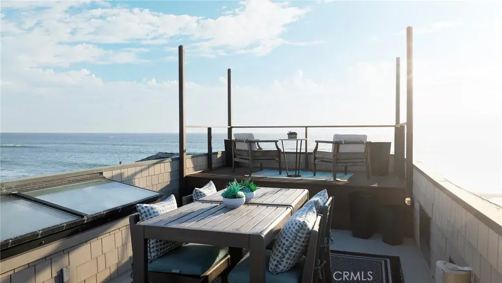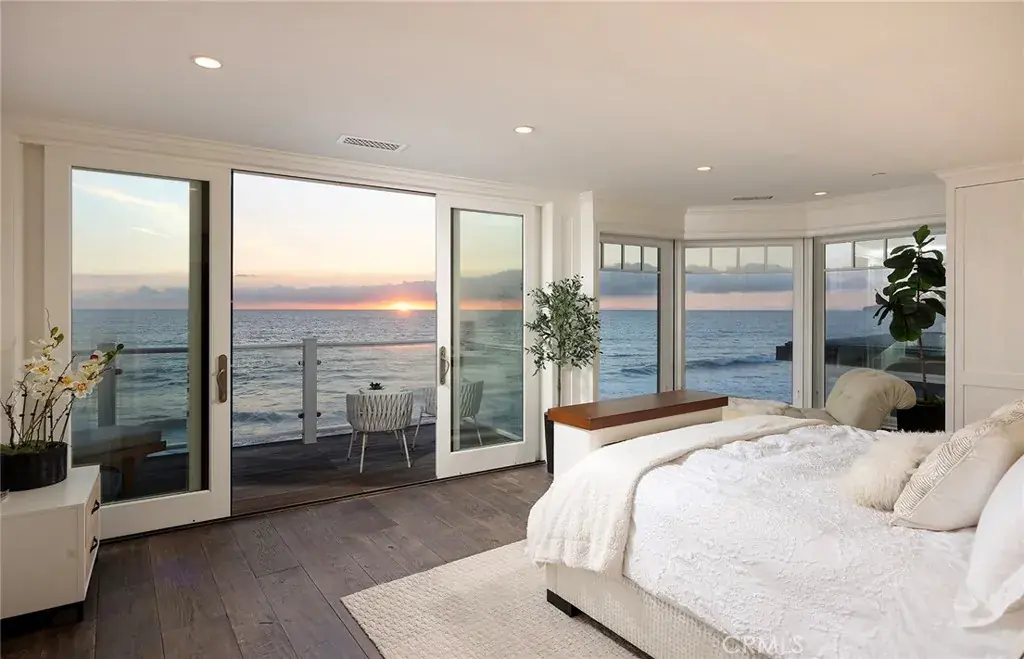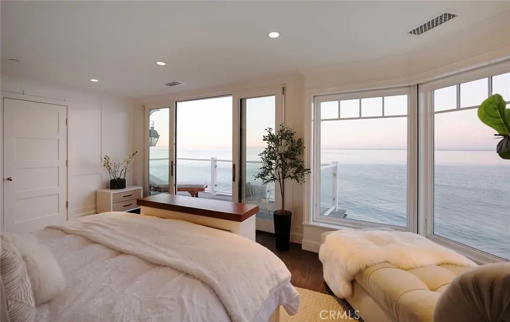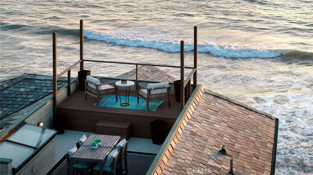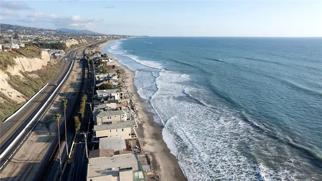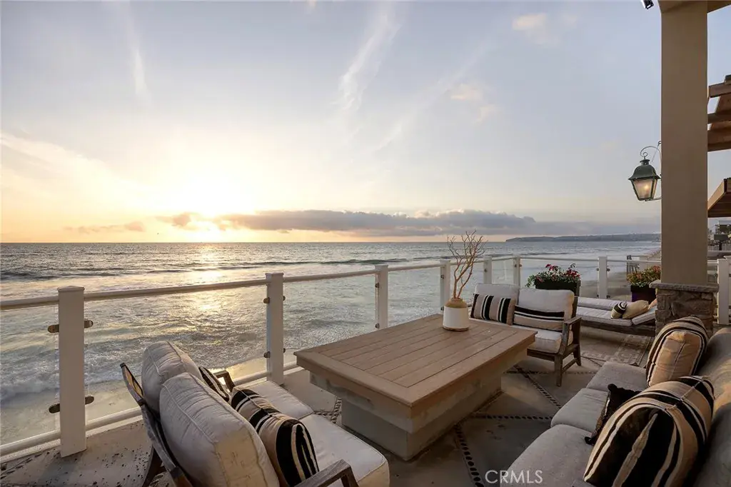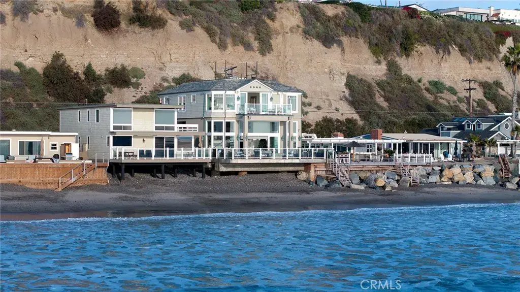 Immerse yourself in luxury at this exquisite oceanfront home, a true jewel in Orange County’s most coveted coastal neighborhood. Commanding a prestigious position on Beach Road, this home stretches across a 1.7-mile sandy expanse, nestled between the San Clemente Pier and Dana Point Harbor. Experience the epitome of Southern California’s “California Riviera,” a secure, private haven offering unparalleled views and serenity, 24-hour gated security included. A symphony of design, the home is a collaboration between renowned architects Bryant, Palmer, Soto, and interior designer Lane McCook. Its floor plan masterfully embraces the stunning ocean vistas, with the primary living areas overlooking the endless sea. The entrance ushers you into a lower level adorned with several sitting areas, soaring double-height ceilings, and a unique concrete-and-river-stone flooring blend. Crafted for the connoisseur, the home boasts three A/C zones and a private elevator accessing all levels. The oversized deck, complete with a fire pit and beach stairway, merges effortlessly with a casual living area through LaCantina sliding doors, creating an enviable indoor-outdoor space. The main living area above features a cozy fireplace and dining space, adjacent to a kitchen that epitomizes sophistication. White cabinetry, light marble countertops, and a backsplash complement the high-end Wolf range and SubZero refrigerator. Notable kitchen additions include a butcher-block island, built-in credenza, and walk-in pantry. This level also houses a spacious laundry area, powder room, and a home office currently serving as a podcast studio. Ascend to the upper level to discover four ensuite bedrooms, culminating in the grandeur of the Primary Suite. Here, panoramic windows, a vast deck, and wood-paneled walls frame the breathtaking seascape. The primary bathroom indulges with black herringbone flooring, floating dual vanities, a spacious shower, and a standalone bathtub positioned to soak in the ocean views, extending from Dana Point Harbor to San Clemente.