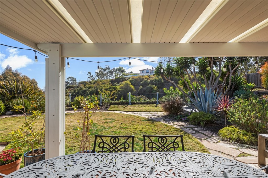 SINGLE LEVEL! ONE MILE TO BEACHES and DANA POINT HARBOR! The warmth of this Open Designer Home is enhanced by its floor plan. A beautiful white marble slab Fireplace, Fully Upgraded Gourmet Kitchen with GE Appliance Package and Private backyard with canyon views which are a rare find in Dana Point. The Primary suite features a spa-like ensuite with granite counters, dual sinks with a separate seat makeup vanity, and stylish fixtures high-end finishes. Two additional bedrooms, share a newer remodeled guest bath. Large outdoor backyard space great for entertaining, dry bar counter, stone patio and pathways, fenced in front and back yard for pets and very private with raised planter/garden beds to plant vegetables, lemon tree and two avocado trees. Easy walking distance to Doheny state park and beach, grocery, parks and restaurants. Open floor plan with lots of natural light with solar tubes, skylights. One level living and NO INTERIOR STEPS! Unfurnished. No Maintenance: weekly lawn/garden care included. There are 13 Solar Panels: for low utilities and kitchen has ample storage, pantry. Garage has lots of custom cabinets for storage, coat closet, laundry and EV hookup. Don’t miss this wonderful home!