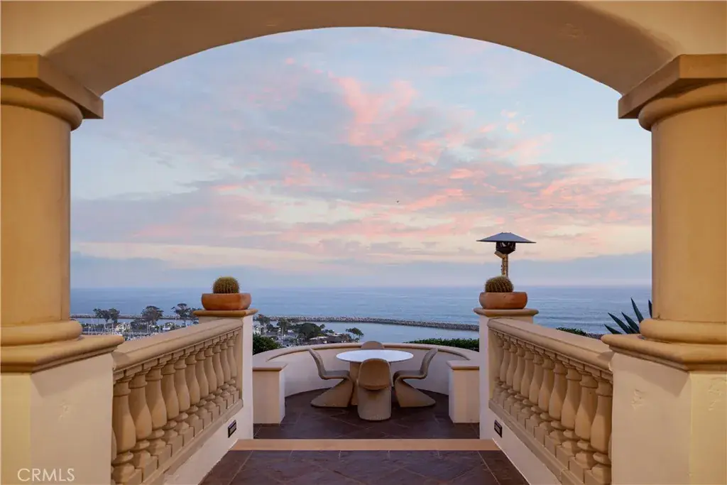 Welcome to Casa Santa Clara, an exquisite Spanish Colonial Revival estate perched atop the bluff overlooking Dana Point Harbor. Inspired by the iconic works of Wallace Neff, this custom home embodies the timeless elegance of early California architecture, seamlessly blending Old World craftsmanship with modern luxury. From the moment you step inside, sweeping panoramic ocean and harbor views captivate the senses, while the meticulous design details-hand-painted tiles, intricate wrought-iron accents, and exposed wood beams–reflect the unmistakable influence of Neff’s refined aesthetic. The main house offers three beautifully appointed bedrooms, while the guest house features two additional bedrooms, creating a private retreat for visitors. These two parts of the property are connected by a stunning courtyard, where a vibrant Marlo Bartels fountain serves as the crown jewel, celebrating the rich tradition of Spanish tile artistry. Throughout the home, these intricate tiles emerge unexpectedly, adding warmth and character to the crisp, eggshell stucco exterior (originally textured by Sicilian craftsmen) all homages to Neff’s architectural legacy. Designed for effortless coastal living, Casa Santa Clara spans three levels, all accessible by a private elevator. The gourmet kitchen, adorned with custom cabinetry and premium appliances, opens to an inviting dining and living area, perfect for entertaining. The primary suite is a sanctuary of its own, offering a spa-like master bathroom and a private balcony to take in the breathtaking ocean vistas. On the third level, a game room/study provides an intimate retreat with unmatched views. The guest house features a mirrored room to host a gym and a home theater in the living quarters equipped with an audio surround system. Step outside onto the expansive terraces and lushly landscaped patios, where ocean breezes and golden sunsets set the stage for al fresco dining and relaxation. With an unrivaled location just moments from Dana Point’s world-class marina, pristine beaches, and the charming Lantern District, this estate offers a rare opportunity to own a piece of California’s most coveted coastline. As the Dana Point Harbor Revitalization project unfolds, the future shines even brighter. Experience the pinnacle of luxury living in this Wallace Neff-inspired masterpiece. Available October 1st, 2025