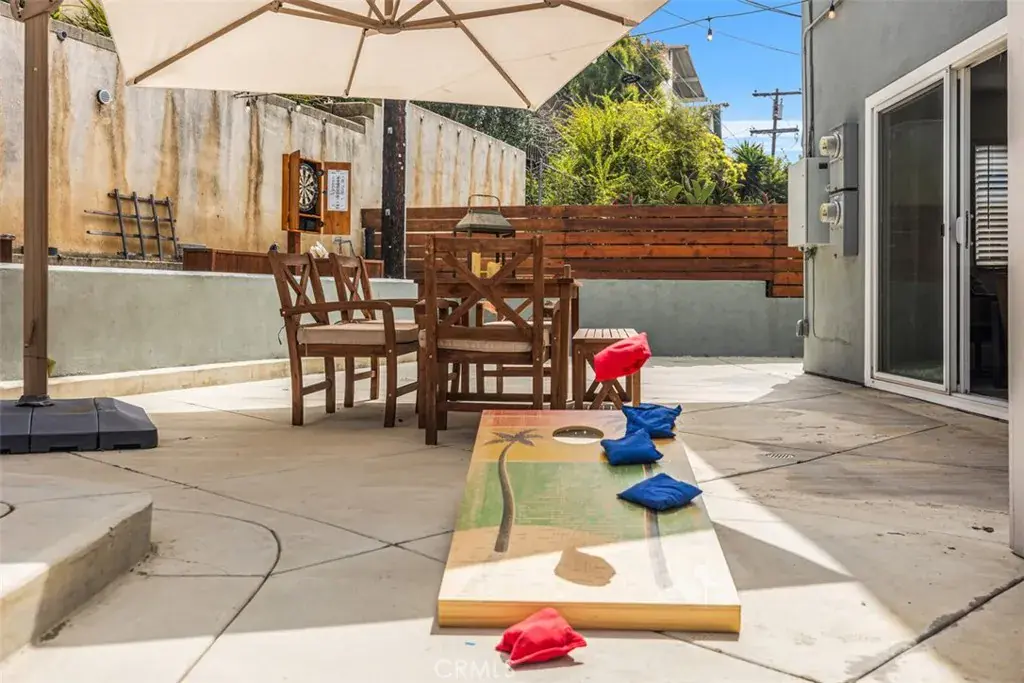 One of the standout features of this property is the expansive, enclosed front and backyard—shared with the upper unit—which is thoughtfully designed for both relaxation and fun. Enjoy a covered gazebo, natural gas BBQ, extra-large luxury umbrellas, a cozy fire pit, string lighting for evening ambiance, and games like darts, cornhole, and a hook-and-ring game. Whether you’re roasting marshmallows, hosting a casual gathering, or simply unwinding under the stars, this outdoor space has something for everyone. There’s also an outdoor storage locker for any recreational gear or extra belongings.