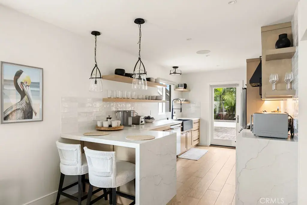 Available starting June 1st. Tucked in the heart of Dana Point’s coveted Lantern Village, 34051 Alcazar Drive has been completely reimagined into a modern coastal retreat that is fully furnished. Every inch has been transformed—from the tropical landscaping and new hardscape to the fully rebuilt interior that lives like new construction. Natural light fills open living spaces finished with wide-plank oak floors, designer fixtures, and custom cabinetry. The kitchen is a showpiece with warm wood tones, quartz counters, floating shelves, and premium stainless-steel appliances that open effortlessly to a private backyard with a built-in BBQ, outdoor shower, and lush palms. Three bedrooms and two bathrooms that have been thoughtfully designed with spa-inspired finishes, including custom tilework and frameless glass showers. The third bedroom is a versatile guest suite within a fully finished garage conversion featuring a kitchenette and Murphy bed. There is driveway parking with generous off-street parking that is just minutes from the Dana Point Harbor, beaches, and downtown. This home is the essence of modern coastal living—where style, function, and comfort meet in perfect harmony.