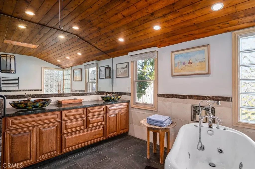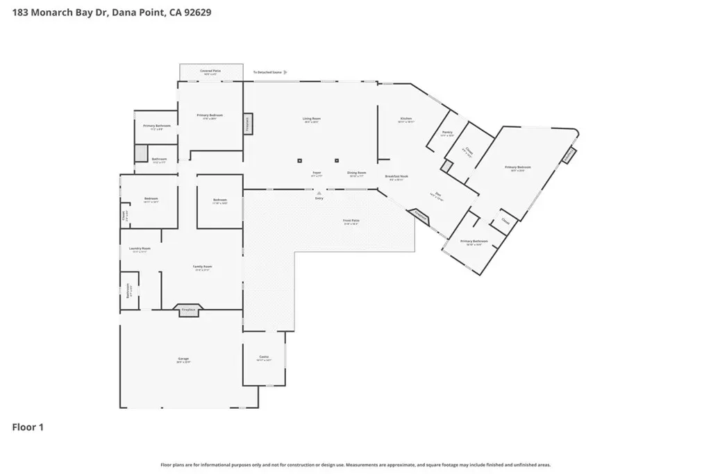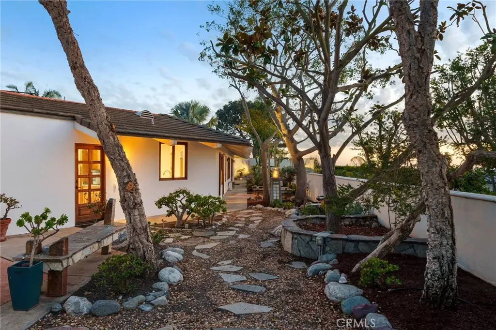 Set within the prestigious, guard-gated enclave of Monarch Bay, this stunning single-level estate offers nearly 5,000 sq. ft. of refined coastal living on one of the community’s largest lots. Located on a tranquil cul-de-sac, the home welcomes you through an expansive gated courtyard into a sprawling retreat designed for both relaxation & entertaining. The lush grounds feature a covered patio w/skylights, an inviting outdoor fireplace & views of Three Arch Bay’s hills & evening lights. Beyond the grand custom entry door, the magnificent great room boasts soaring ceilings, stacked-stone columns, & a floor-to-ceiling marble fireplace, with glimpses of the ocean. The spacious kitchen features stone countertops, an island, stainless steel appliances, an oversized walk-in pantry, & a gracious nook. The expansive primary suite is a private sanctuary, complete with a cozy fireplace, a large walk-in closet, & a French door leading to the serene rear yard. Its luxurious spa-like bath showcases an oversized frameless glass shower, a clawfoot soaking tub & heated towel rack. A secondary primary suite offers elevated ceilings, a walk-in closet, a remodeled marble-accented bath, & a French door opening to the ocean-facing backyard. Designed for versatility, the home also includes two additional bedrooms plus an oversized bonus room featuring an exotic wood ceiling, a stone fireplace, and French doors leading to the courtyard. The rear yard is a peaceful oasis w/mature trees—including Japanese pine, grand magnolia, and oak—complemented by custom stone benches, onyx lighting, a relaxing sauna & views. Additional highlights include exquisite 24” Celini Argento tile, luxuriously remodeled bathrooms, custom lighting, solid wood doors, spacious laundry room with/custom marble pet-washing shower & a massive three-car garage. A separate casita serves as a private office or gym, offering picturesque views of the front grounds & hillside beyond. Residents of Monarch Bay enjoy exclusive access to resort-style amenities including tennis & pickleball courts, a community & dog park, a playground, and the spectacular private beach club—complete with an indoor-outdoor bar, beachfront dining, firepits, & towel, chair, & umbrella service. Ideally located near hiking trails, world-class golf & surfing, & premier coastal resorts like The Ritz-Carlton, Waldorf Astoria & The Montage, this exceptional property is also set to benefit from the exciting Dana Point Harbor revitalization project.
