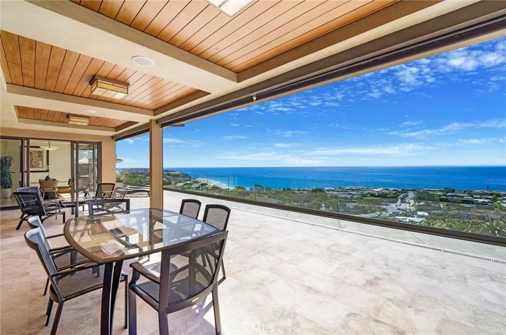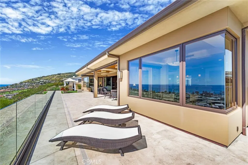 Absolutely one of the finest and most “meticulously maintained” custom built, soft-contemporary single level residences on the market today in the coveted “Ocean-close community” of Monarch Bay Terrace! This “newly constructed” custom home is positioned on a 19,000+sqft site and offers spectacular panoramic ocean & “white water” views, inclusive of the Salt Creek beach shoreline, Catalina Island, the Waldorf Monarch Beach Golf Course and the Emerald Ridge greenbelt! This approximate 3900sqft residence consists of 4 bedrooms, 4 bathrooms, (inclusive of a private entry guest casita w/patio), 2 fireplaces (one wood burning), oversized 2-car garage, vaulted ceilings, a very open and spacious floor plan offering an incredible abundance of natural light & spectacular ocean and coastal views, a 39-foot wide covered loggia featuring a Weiland bi-fold door system, 9 skylights–3 motorized, custom electric sunscreens and an “outdoor grilling station” with a Wolfe 36-inch grille and side burner. Additional custom features include: Subzero, Wolfe and Miele appliances, whole-home interior fire sprinkler system, Hansgrohe faucets, premium Navien tankless water system, a 24-panel solar system, exterior copper light fixtures, custom Mahogany cabinetry doors, baseboards and a tongue & groove Mahogany ceilings. Natural Stone Materials include: Travertine, Emperado, Cafe Forest & Calcutta Gold Marble, Black Galaxy & Mascarello Granite & Crema Limestone. Full stone slab showers and LumenAria Faux Alabaster Interior Light Fixtures. The amenities are difficult to exhaust! This incredible custom designed & built residence contains mechanical, electrical and drainage systems designed for “long term” performance and “low maintenance” coastal living. This residence is located within minutes of both the Ritz Carlton and Waldorf Astoria Resorts & the renowned Salt Creek Beach! Equally close is the Montage Resort & the Dana Point Harbor and the Lantern District containing numerous dining and shopping establishments. Nearly every component of this home was deliberately selected & engineered far beyond standard practice, that is felt more than it is announced. The “floor plan” and interior spaces emphasize wide structural spans, an abundance of natural light, and seamless indoor/outdoor transitions oriented toward the panoramic ocean and Catalina Island views. Truly a phenomenal opportunity located within the coveted coastal community of Monarch Bay Terrace!! THIS IS NOT A REMODEL!
