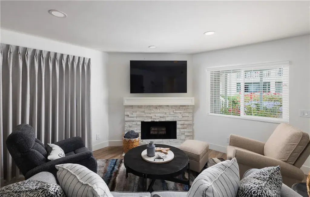 Available to rent April 1st 2026. – Perched on the cliffs of Dana Point’s sought-after Strands Beach, this stunning beachfront residence offers a thoughtfully designed single-level layout encompassing 1,235 square feet. Featuring three beautifully appointed bedrooms—each with new beds, TVs, and coastal-inspired décor—and two remodeled bathrooms, every detail has been carefully updated for modern beachside living. A serene color palette complements the brand-new kitchen, which boasts sleek cabinets, quartz countertops, and stainless-steel appliances. Throughout the home, luxurious vinyl plank flooring is paired with fresh 6-inch baseboards and new interior doors. Recessed LED lighting adds a warm glow, while the bathrooms are outfitted with quartz-topped vanities, new toilets, and stylish fixtures. Additional upgrades include dual-pane windows, fresh interior paint, and two private patios perfect for relaxation. The home also features mirrored wardrobes, an in-unit laundry area with a new washer and dryer, two covered carport spaces, and generous guest parking. Just steps from the bluffs above Strands Beach, this exceptional home offers an ideal retreat for you and your guests to enjoy the beauty and charm of Dana Point.