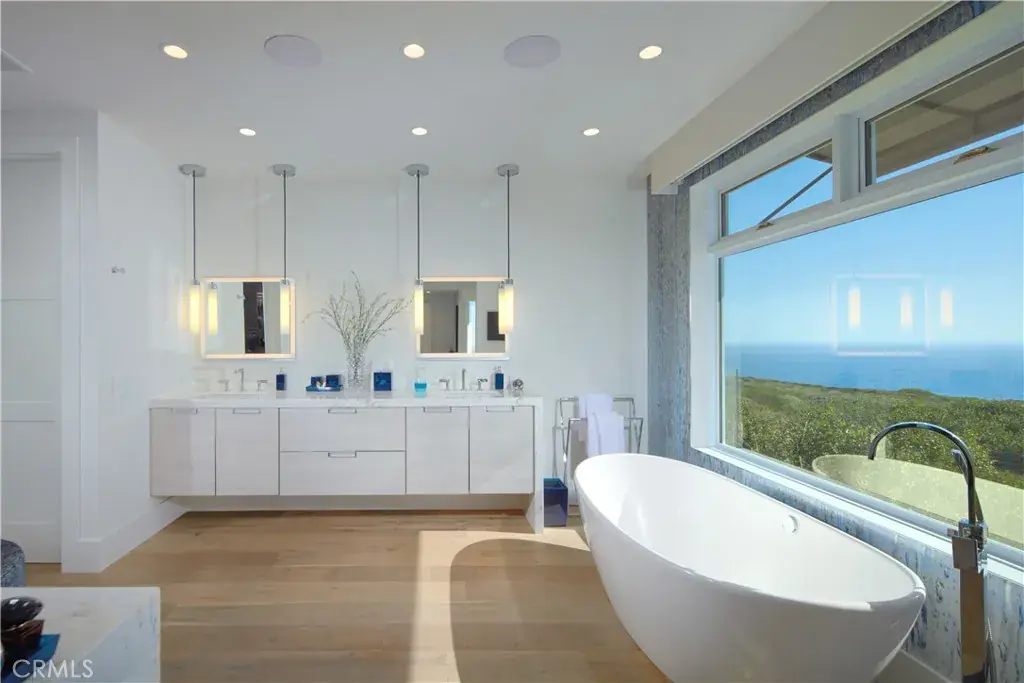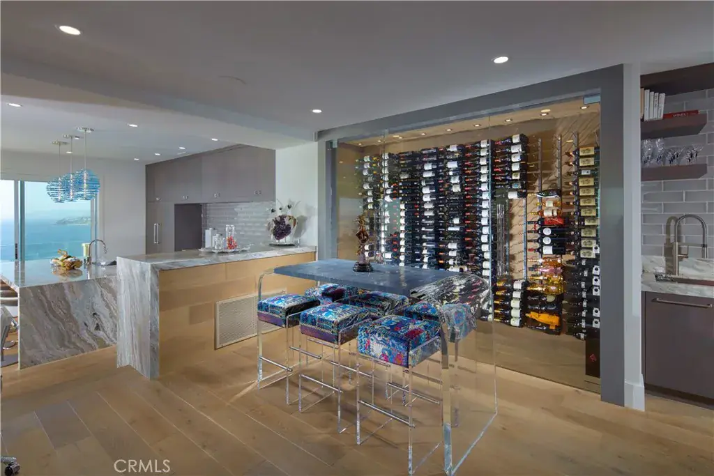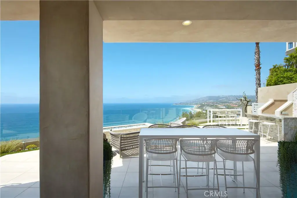 OCEANFRONT WITH UNIQUE 7-CAR GARAGE. Perched atop Dana Point’s historic Headlands, Residence B immerses you in unmatched ocean vistas from San Diego to Palos Verdes, blending modern luxuries with coastal elegance. This home stands apart due to a major remodel in 2017 and subsequent upgrades in 2021 and 2023, setting a new benchmark in coastal luxury living. As the largest floorplan in the community, this recently remodeled home boasts today’s most desired features, offering bespoke living at the Pacific Ocean’s edge. The unparalleled views span from San Diego, across crashing waves and sandy shores, to Catalina and north to Palos Verdes. This approximately 4,537 SF home includes three en-suite bedrooms and three-and-a-half baths. Upon entering through the gated entrance and double doors, you’re greeted by a breathtaking foyer with an immediate ocean view, a Quintus chandelier, and a J.H. Minasian silk rug. Many hand-picked furnishings, included in the residence, are from top designers such as Roche Bobois, Cantoni, Holly Hunt, Shine by Sho, Ziething, and Jonathan Franc. The ocean-view dining room is accentuated by a custom glass wall panel, while the great room showcases vast windows, a linear fireplace, and a balcony with beach views. The state-of-the-art kitchen shines with beautiful quartz countertops, a sizable island, a walk-in pantry, and built-in appliances from Sub-Zero, Wolf, and Miele, including a coffee station, steam oven, and microwave/convection oven. Just steps above the main kitchen, discover a butler’s pantry and a glass-enclosed, temperature-controlled wine room with a 567-bottle capacity. On the other wing, a chic home theater boasts over $156,000 in top-tier AV equipment and a built-in concessions cabinet. The primary suite offers mesmerizing ocean views, Thomas Lavin wall coverings, a standalone tub, built-in vanity, quartz countertops, and a spacious walk-in closet with custom California Closets built-ins. A new glass and steel staircase descends to the lower level, which invites relaxation in the family room, workouts in the gym that features an attached full bath, or outdoor enjoyment in the fully renovated backyard with an above-ground spa. The residence concludes with a seven-car custom-style garage, private with a separate garage door and access to the lower level.