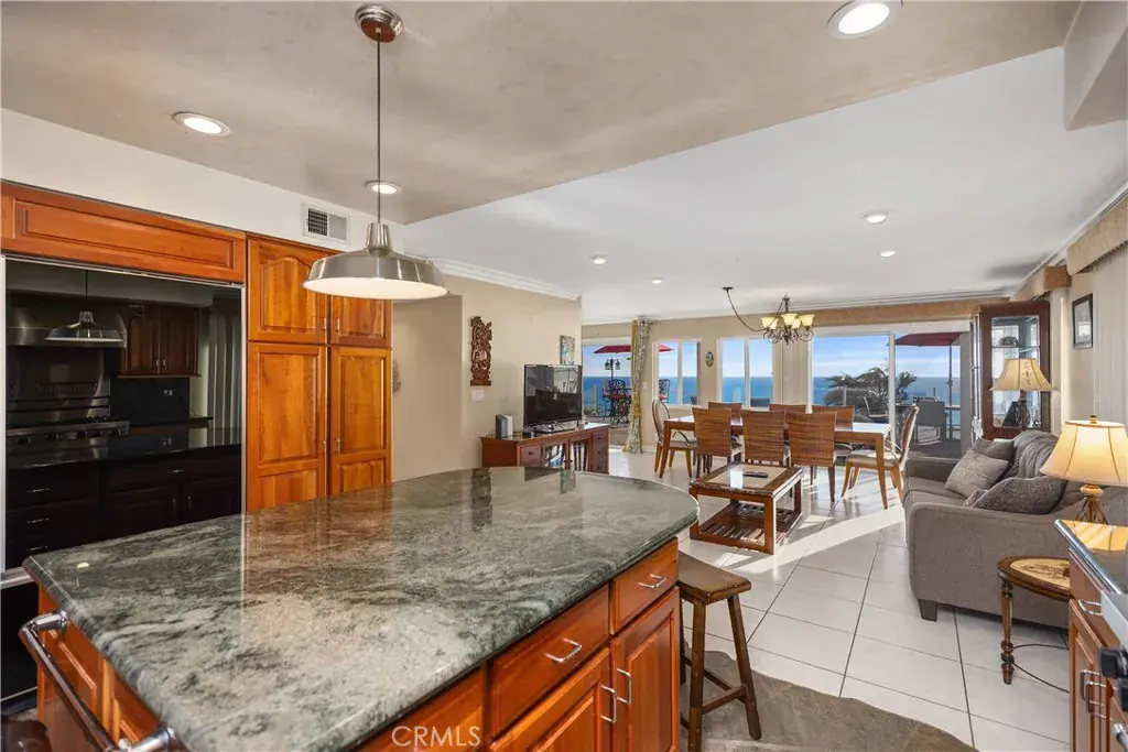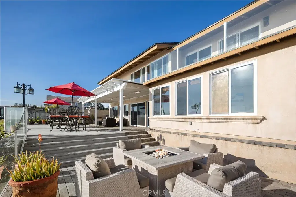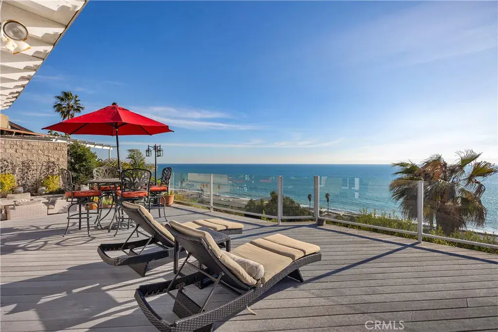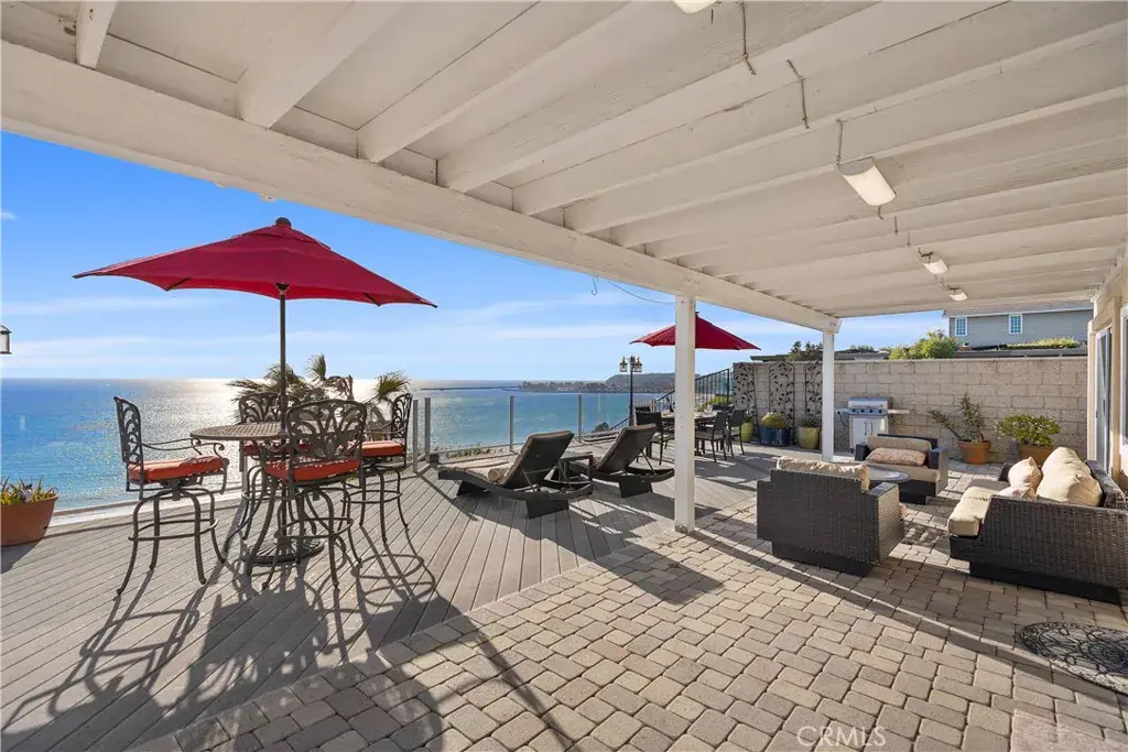 **Property is currently rented; available starting April 15, 2026**. Available for monthly or annual lease, this furnished 4-bedroom, 4.5-bathroom oceanfront residence in Dana Point offers a unique opportunity for luxury living. Situated on the bluff with unobstructed panoramic ocean views, the home combines elegant design with comfort, creating a serene coastal retreat. The main level features a well-appointed gourmet kitchen, seamlessly connecting to the dining and living areas, providing an inviting space for both relaxation and entertainment. A private guest bedroom with an ensuite bathroom and a powder room complete the main floor. Upstairs, three spacious bedrooms offer mesmerizing ocean views, with the primary suite serving as a tranquil haven, featuring a king-size bed, lavish ensuite bathroom, and a private balcony overlooking the Pacific. Additional bedrooms include a queen bed in the second guest room and a queen bed paired with a twin bed in the third bedroom with a private ensuite. A secondary hallway bathroom is also available upstairs. Practical amenities such as a washer and dryer add convenience, while central air conditioning ensures comfort year-round. The ground-level patio offers a perfect setting for alfresco dining or unwinding against the backdrop of the ocean. With ample parking in the expansive driveway and a prime location minutes away from major grocery stores, restaurants, Dana Point harbor, and Southern California’s finest beaches, this ocean bluff home combines convenience with coastal living. Embrace the opportunity to lease this stunning oceanfront residence and experience coastal luxury living at its best.