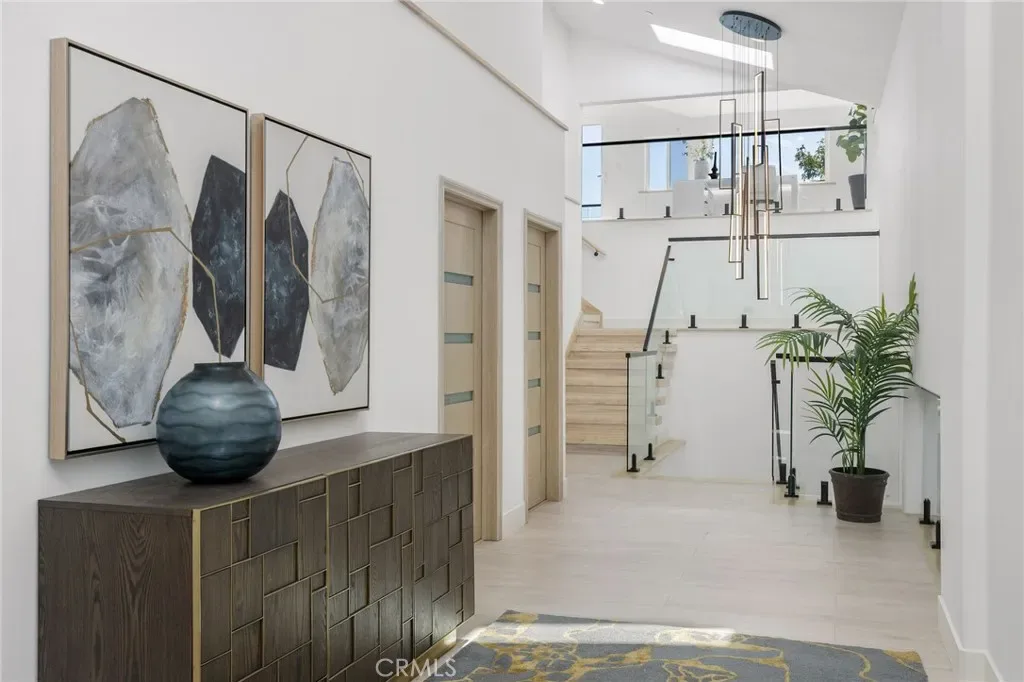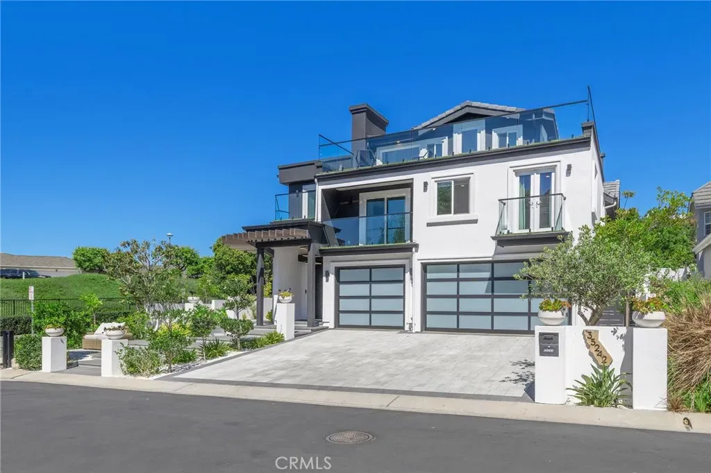 Experience Contemporary Coastal Luxury at its finest at 35242 Vista De Todo, an extraordinary modern estate masterfully rebuilt with uncompromising attention to detail and craftsmanship. Tucked at the end of a quiet cul-de-sac in Capistrano Beach, this residence commands exceptional curb appeal, sweeping ocean vistas, and vibrant sunset skies that frame the home in year-round beauty. A striking 5’ x 8’ metal pivot door sets the tone as you step into a dramatic living area with soaring 12’ ceilings, designer lighting, and an architectural glass staircase with sleek black steel handrail. The open-concept great room is anchored by an artistic modern fireplace and a stunning marble wet bar with glass front cabinetry and a built-in wine refrigerator—an entertainer’s dream. With 6 expansive ensuite bedrooms, each offering walk-in closets, plus two additional half baths, this 6,409 sq ft estate blends sophistication with effortless comfort. The main level includes two luxurious bedroom suites, while the upper level showcases a spectacular primary retreat with a private ocean-view terrace. Multiple balconies throughout the home capture panoramic coastal views and unforgettable sunsets. The gourmet kitchen features stone countertops, Thermador stainless appliances, a full-size wine refrigerator, breakfast bar, and casual dining area. Picture windows and sliding doors gain access and frame the beautifully designed backyard, complete with a putting green, BBQ, Italian pizza oven, outdoor wine cooler, fruit trees, and manicured wraparound grounds. The second floor also offers a private office with its own ocean-view balcony, generous secondary suites, and an impressive 1,000 sq ft of attic storage. Additional highlights include an 8-bathroom floor plan, two laundry rooms, 3 zone A/C, a 3-car garage with direct access, and a 400-amp electrical panel with EV charging. The home is ideal for Airbnb with a 30-day minimum stay. The owner is in the process of getting City approval to add a 360-degree Rooftop Deck. Perfectly situated near Dana Point Harbor, the San Clemente Pier, world-class surf breaks, the Outlet Mall, and an array of exceptional dining and shopping. This home delivers the quintessential Southern California coastal lifestyle with mild weather and endless recreation. A rare blend of modern design, luxurious amenities, and breathtaking ocean views.