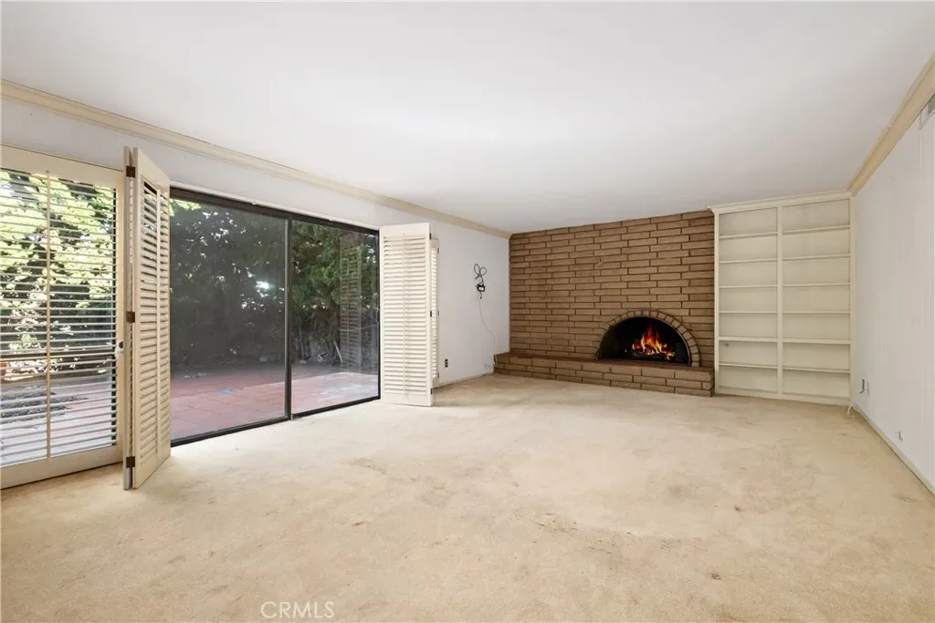Continuing straight ahead, you’ll find a step-down hallway leading to a laundry closet, full bathroom, and an inviting family room complete with a fireplace, wet bar and additional kitchen and backyard access — ideal for entertaining.