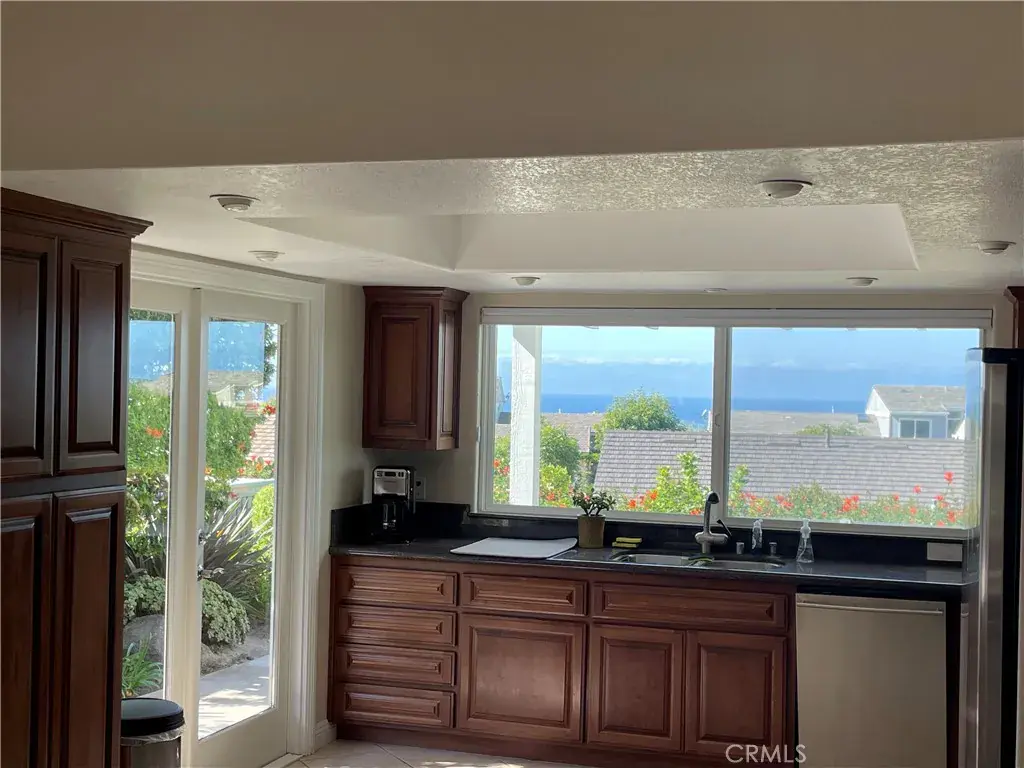 Experience the Southern California Riviera lifestyle! —A rare single-level gem perched in the heart of Dana Point’s iconic Niguel Shores. With panoramic ocean, Catalina Island, and sunset vistas, this beautifully upgraded home lets you enjoy every day like a vacation along Orange County’s gold coast. Step inside to a wide-open, sun-filled living space perfect for casual beachside living and coastal entertaining. The spacious living area features a river rock fireplace and flows seamlessly to the dining area and gourmet kitchen, where top-tier cabinets, granite counters, quality stainless appliances, and a window framing blue water set the scene for laid-back dining after sun-soaked days. Wake up every morning to whitewater views in your ocean-facing primary suite, complete with walk-in closet, remodeled en suite bath, and direct patio access to soak in the ocean breeze. The versatile second bedroom is ideal for guests, a home office, or a relaxing retreat.