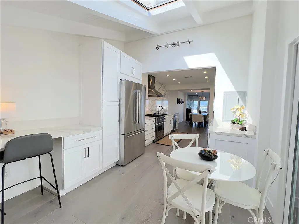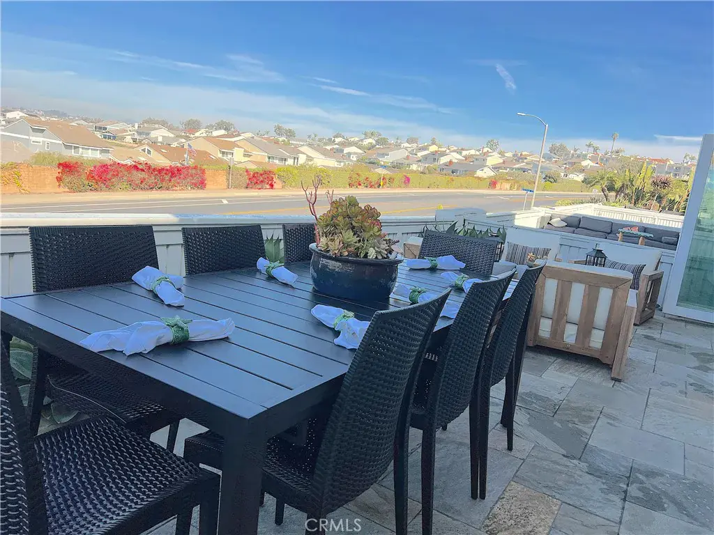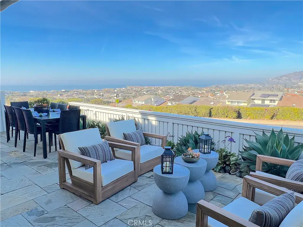 The quintessential Beach House. Completely renovated, this sophisticated contemporary design townhome is complete with Ocean, City & Sunset Views. The kitchen has top of the line stainless steel appliances, an impressive granite slab backsplash & matching countertops, all new drawers & cabinetry with lots of storage space. A vented stainless steel hood over the cooktop, sliding door to the courtyard & a skylight that keeps the space light & bright. Seamlessly through the kitchen you find yourself looking towards the open dining & living rooms that lead to the amazing floor to ceiling, folding glass doors to the patio. Enjoy sitting outdoors with friends & family while taking in breathtaking Ocean Views, then dine alfresco under the stars. The living room has an impressive wood paneled wall, an awesome electric fireplace with realistic flames that also provides heat. Just above the fireplace is a flatscreen TV where you will enjoy your favorite programs. On the other side is the dining room with custom built-in shelving & a table that seats eight. Before heading upstairs, a half bath is conveniently located on the first floor. A floating, frameless glass railing, light filled staircase takes you up to the three bedrooms. Two bedrooms have large mirrored closet doors that slide open with custom built-in closet systems. One of the bedrooms has sliding glass doors that lead to a private Ocean View patio. Both bedrooms share a beautiful hall bath with jetted tub with a shower. Last but not least, the primary bedroom, also with an impressive wood paneled wall behind the king-size bed. Adjacent to the bedroom is a sliding, glass paneled barn-door that separates the spacious primary bathroom. Complete with double sinks, over-sized lighted mirror, an enormous walk-in shower, & a large walk-in closet with a custom built-in closet system and a safe. Just when you thought it can’t get any better…there’s more. Niguel Shores has community Ocean Front parking & beach access, a half-size Olympic heated pool, Spa & Sauna, 4 Tennis Courts, Pickle Ball, Basketball, Baseball, Volleyball Court, Children’s Park and a State-of-the-Art Club House/community center. Enjoy a short walk to downtown Dana Point shops and restaurants. Minutes from the Waldorf Astoria, the Montage, The Ritz Carlton & world class beaches, restaurants and shopping. One hour north of San Diego & one hour south of LA, Niguel Shores is the perfect location. Prices for June – September available on request.