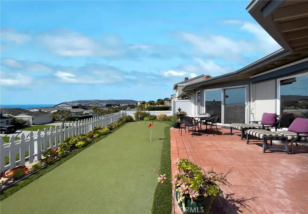 Located in the 24-hour gated oceanfront community of Niguel Shores next to the Ritz Carlton Hotel in Monarch Beach, this ocean view expanded one story coastal gem has just been completely remodeled throughout with top of the line designer finishes and architectural details. This fully furnished seasonal rental boasts lovely ocean and sunset views and is just a short distance to the Clubhouse complete with Pool, Spa, Tennis, Pickle Ball, Sports Courts or to the Blufftop Oceanfront Park and Parking lot with direct beach access. The gated front secluded bricked courtyard patio provides a sunny and bright place for enjoying the tranquil setting with new “Dutch” Door entry, windows, lights and siding plus the back yard patio areas offer lovely ocean and sunset views, a putting green, and delightful ocean breezes. The stunning interior features a chef’s kitchen complete with all new custom cabinetry, a center island, quartz counters and Miele appliances including a commercial style gas range. The open concept living room includes vaulted ceilings, a fireplace, large dining area, and “sit-down” ocean views. The master suite offers ocean views and a luxurious all new bath with dual vanity sinks and the lavish use of stone and designer tile. The secondary bedroom opens to the front courtyard and includes a queen size bed and TV plus the property includes an office/den/3rd bedroom. The all-new secondary bath is a designer’s dream. Special features include wood floors throughout, Solar Tubes in bathrooms, laundry room, and hallway, Reverse-Osmosis water filtration system, flip-out window at front courtyard with a bar countertop, LED lighting, new Air Conditioning, solar window shades plus black out shades for bedrooms and 3-Smart TV’s. The oceanfront community of Niguel Shores is situated very near to the Links Golf Course and the Waldorf Astoria Monarch Beach Resort, the Marina at Dana Point, and the Art Colony of Laguna Beach. This coastal inspired property captures the essence of the fun and festive beach lifestyle living in Niguel Shores…The “Best-Kept” Secret Along The Coast! Enjoy the breathtaking Catalina Island sunset views, a stroll on the beach, or a game of pickleball for the perfect vacation experience.