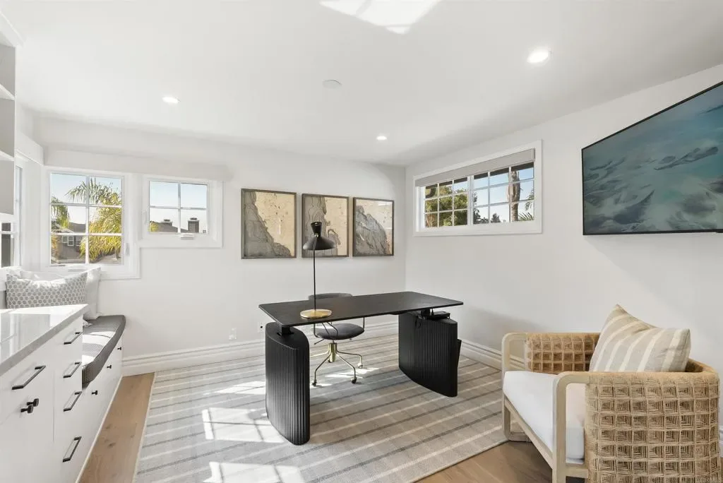 Ready to experience the Del Mar dream? This stunning fully renovated lagoon-front home sits within the exclusive gated community of Playa Del Mar in Del Mar’s coveted Beach Colony. Three sets of floor-to-ceiling accordion glass doors frame panoramic views of the San Dieguito Lagoon and open to two private outdoor patios, creating seamless indoor-outdoor living. The stunning open-concept great room flows into a gourmet kitchen with a Bosch induction cooktop, wine refrigerator, and custom entertaining spaces, while built-ins with integrated charging stations, electronic shades, and Samsung Frame Art TVs add a refined, move-in-ready polish throughout. Upstairs, the primary suite is a true retreat — complete with lagoon views, a private balcony with peek ocean vistas, a gas fireplace, two custom walk-in closets, and a spa-appointed bathroom. A bedroom and full bath on the main level offer flexible accommodations, and a dedicated home office with an adjustable desk rounds out the upper floor. Central air conditioning, high-speed Wi-Fi, a two-car garage with washer/dryer, and access to a heated community pool and jacuzzi complete this exceptional offering — all just steps from Del Mar’s 29th Street Beach, Dog Beach, the Del Mar Racetrack, and the village’s acclaimed dining and boutique shopping.