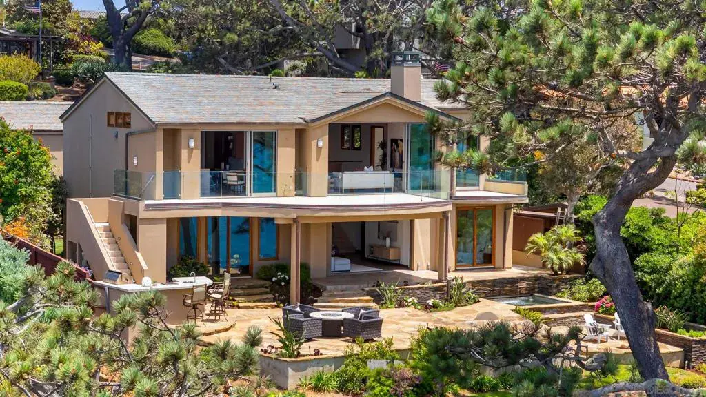 Wake to the sound of the surf and endless whitewater views in this private Olde Del Mar coastal retreat. Rebuilt in 2005 on a meticulously landscaped 0.34-acre parcel, the organic modern aesthetic of this home offers a seamless blend of privacy, scale, and elevated indoor-outdoor living. Fleetwood doors open to expansive ocean-facing decks, while mahogany ceilings, abundant natural light, and a dedicated office enrich the main living spaces. The chef’s kitchen, remodeled in 2017, is designed for both entertaining and everyday ease. Downstairs, three en suite bedrooms—including the ocean-view primary—plus a family room with sweeping ocean views open directly to the outdoors. A detached studio and resort-style backyard with spa, fire pit, BBQ, and sculpted lawns complete this rare opportunity just minutes from Del Mar’s iconic beaches, trails, and Village dining.