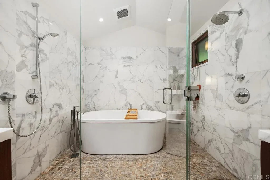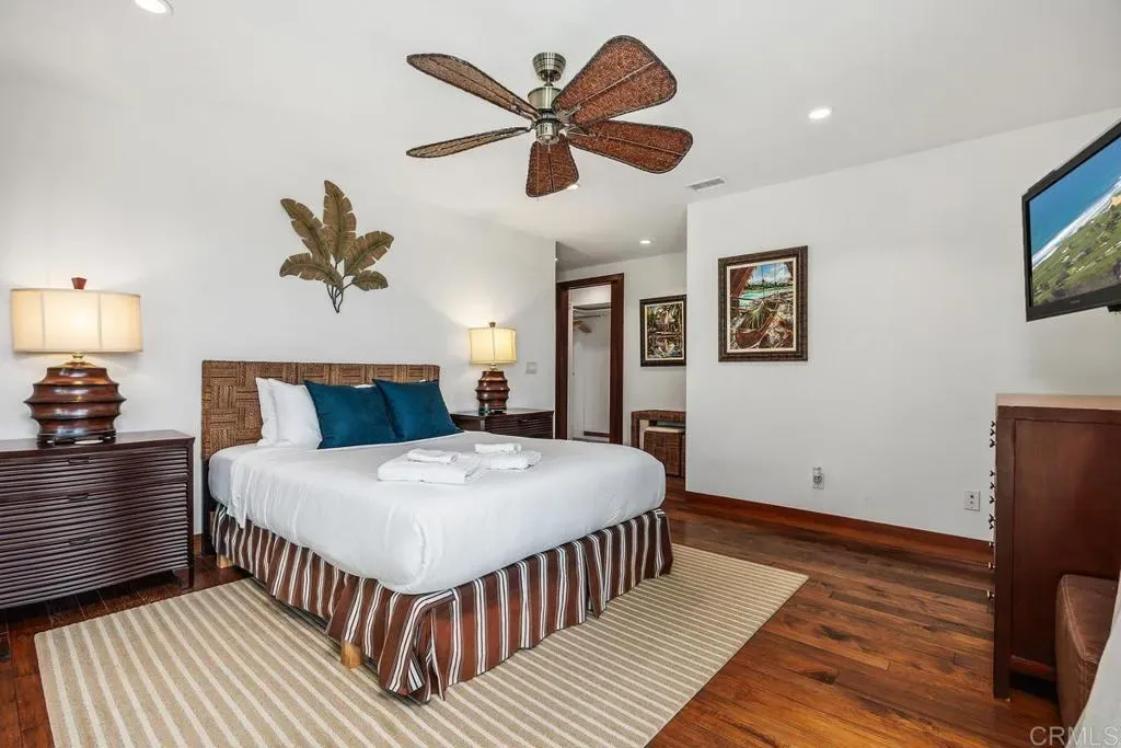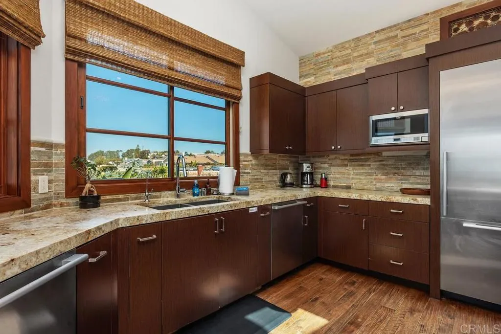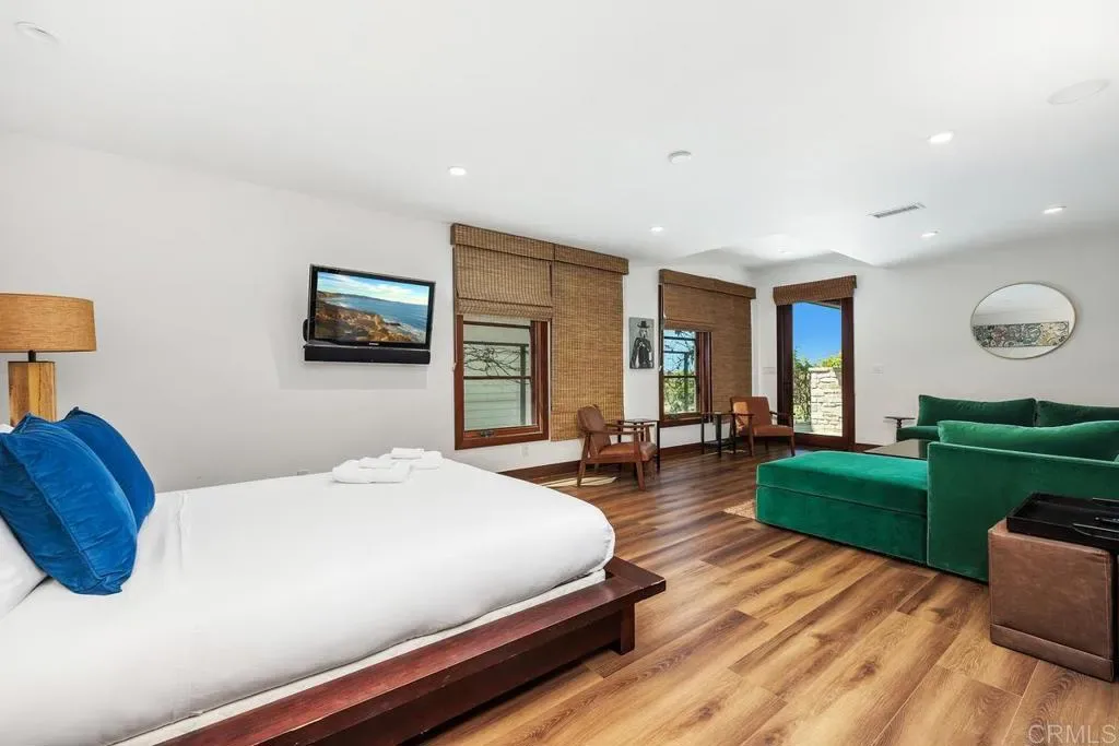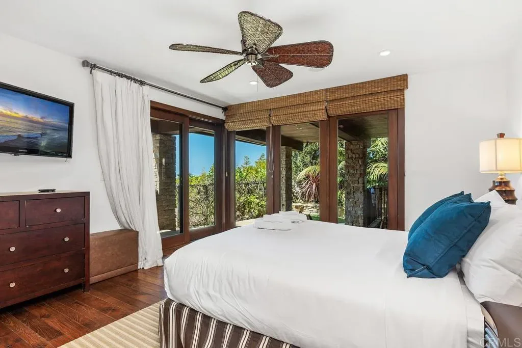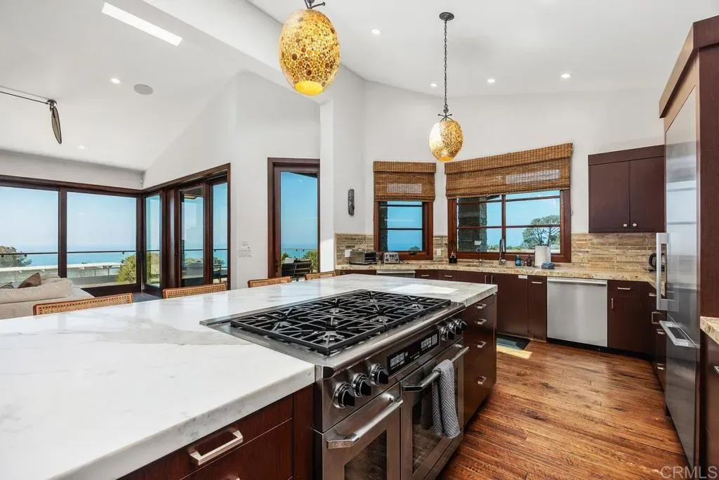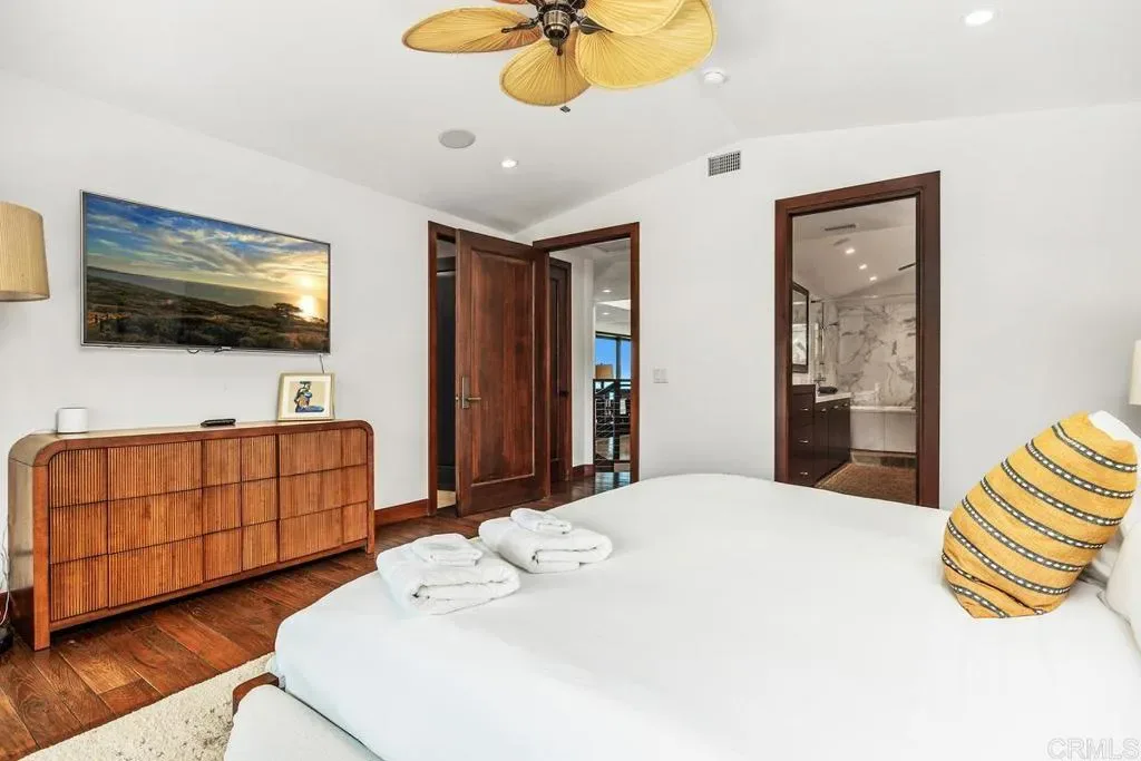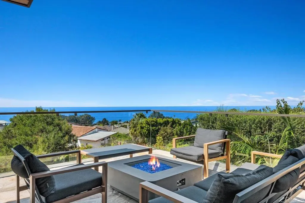 READY FOR MOVE IN 6/15/2026! Spectacular Ocean Views from the main living area. Discover the ultimate blend of coastal luxury and serenity at Costa Del Mar. Nestled in a quiet, upscale neighborhood, this stunning home offers panoramic ocean views and an exceptional indoor-outdoor lifestyle designed for relaxation and entertaining. Floor-to-ceiling windows and sliding doors seamlessly connect the interior to the Pacific vista. Located in a gated, private setting just five minutes from San Diego’s premier beaches and top-tier dining and shopping. Enjoy a courtyard with lounge seating, a fire pit, a built-in spa with waterfalls, a spacious view deck, and a basketball hoop. Fully furnished. Laundry Room with full size W/D. There is a one car garage for parking, and another one car garage is currently used as an office/Gym and has a roof top patio for ocean viewing. A large, gated driveway will accommodate 3 other cars and there is ample street parking as well. Beautifully designed open floor plan defined by elegant coastal decor. The gourmet kitchen is fully equipped with granite counters, marble floor and center island as well as two refrigerators/freezers and two dishwashers. This amazing kitchen is perfect for entertaining or large family gatherings. Two distinct living rooms provide ample space for gathering and relaxation. For music lovers a piano is provided in the secondary living area. There is a Main-Level Primary Suite, balcony with courtyard views, and a spacious en-suite bathroom complete with a dual shower and a standalone soaking tub. Three guest bedrooms are located on the lower level. Two are en-suite, and all feature direct patio access to the built-in spa. Not pictured is a small bedroom currently used as a nursery. Experience the best of San Diego living at Costa Del Mar, where every detail is crafted to take full advantage of the region’s ideal climate and breathtaking coastal beauty. Will consider a pet with additional deposit and prior approval.