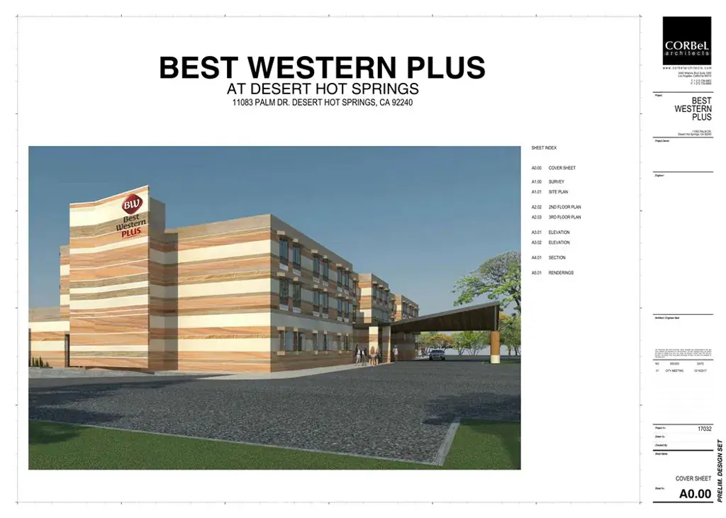 Owner says sell and is willing to carry paper on this Exceptional opportunity to build a hotel/spa on this city block in the heart of Desert Hot Springs. The property is zoned for hospitality and has the hot mineral water on site. Renderings for a state of the art Best Western Hotel included in the pictures.