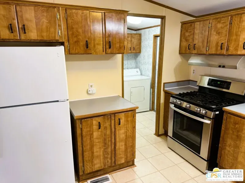 Check out this clean and well kept home located in the cozy 55+ community of Corkill Palms. There is 1056 square feet of open living space with 2 bedrooms and 2 baths. Bright open floor plan between living room, dining and kitchen. Tile in bathrooms with laminate throughout the rest of the home. The kitchen has lots pf cupboards and cabinets for storage and includes refrigerator and free standing stainless steel gas range with hood vent. Both baths have been renovated with new fixtures. Inside laundry complete with washer and dryer. It has a newer HVAC system as well as newer tankless water heater and light fixtures. There is also a storage shed off the carport and next to that a small yard sitting area. In the front of the house there is a large pergola covered porch with nice mountain views perfect for outdoor entertaining. Glass top dining room table with 6 chairs included. Relax in the Therapeutic Natural Mineral Springs at the Clubhouse or have some fun on the putting green or in the billiard room located vary close by. Space rent is approximately $540 per month. Buyer to verify with park manager space rent amount and any utility charge amounts passed on to home owners. Call today to set up an appointment to view this great property!