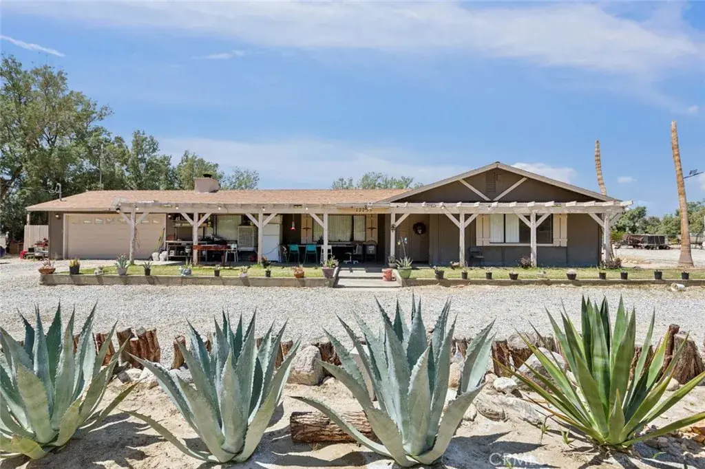 Nestled on nearly 5 acres in Desert Hot Springs, this private and distinctive gated ranch offers a unique living experience. The single-story home spans 2,678 square feet and includes 3 bedrooms and 2 bathrooms. Inside, you’ll find tile flooring, ceiling fans with lighting, and ample storage throughout. The living room boasts a cozy fireplace, and the home also features a dining room, den, and laundry room. The kitchen is designed with granite countertops and equipped with stainless steel appliances. The bright and spacious bedrooms provide a comfortable retreat. The property includes an expansive exterior with an approximately 2,000 square-foot barn featuring 8 stalls, a tack room, and feed storage. Additionally, there is plenty of usable land. The property is zoned W, and the spacious driveway leads to a 2-car attached garage with ample additional parking. This ranch enjoys a great location near Desert Dunes Golf Course and overlooks the scenic San Jacinto Mountains.