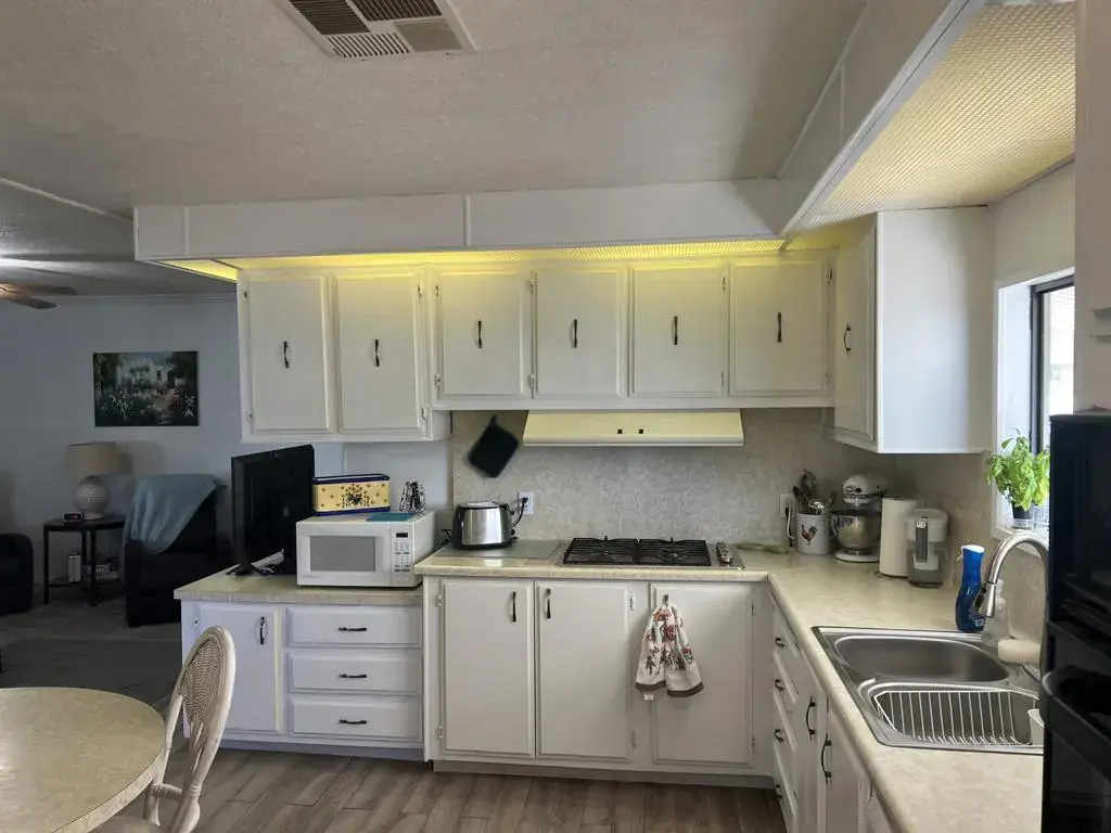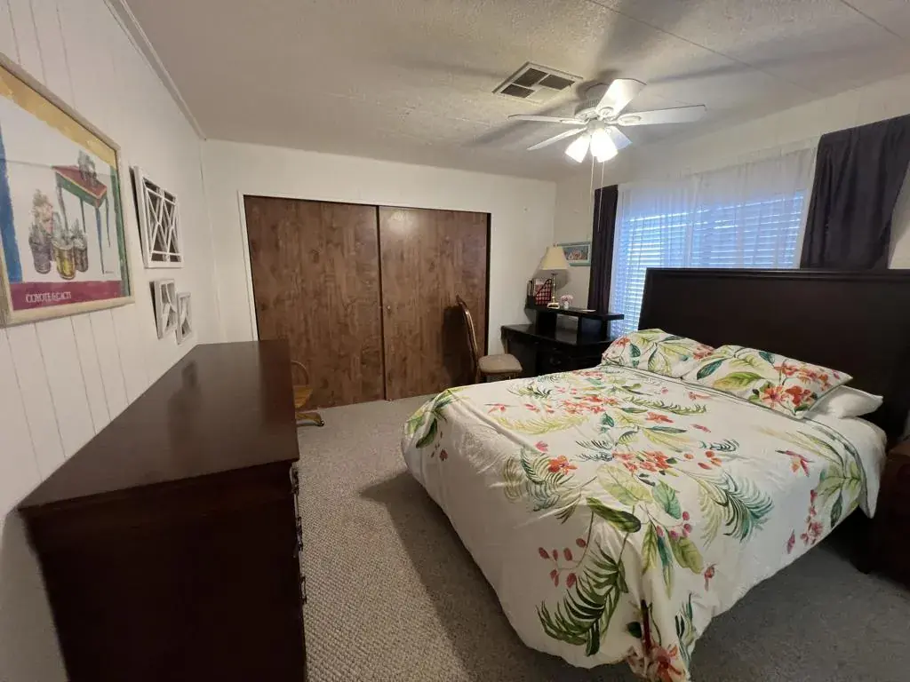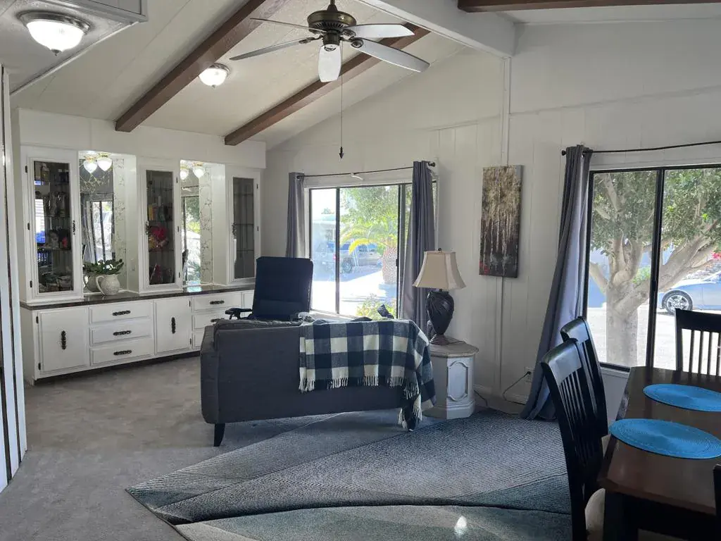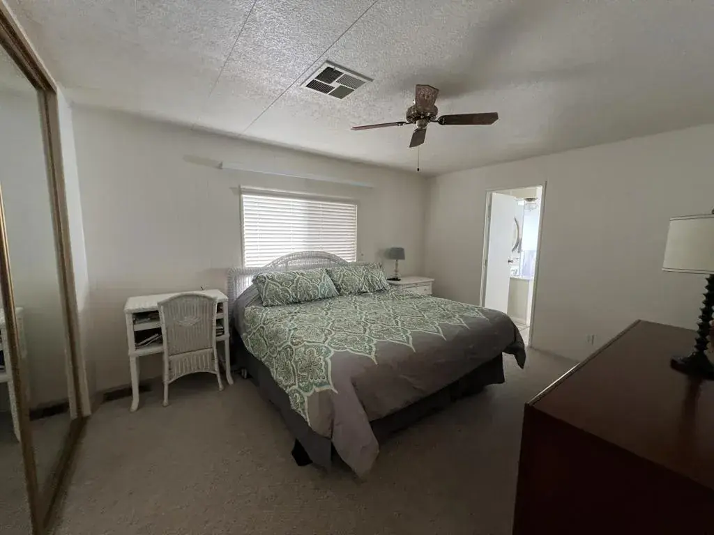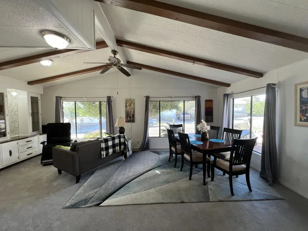 BEAUTIFUL MOVE-IN READY HOME WITH CATHEDRAL CEILINGS!This well-maintained home is in excellent condition and offers a bright, open floor plan with soaring cathedral ceilings. Featuring 2 bedrooms, 2 bathrooms, plus a bonus room, this property provides generous living spaces and large, comfortable bedrooms.Recent upgrades include a new A/C unit and new water heater. Stylish laminate flooring enhances the kitchen, bathrooms, and inside laundry room, offering both durability and easy maintenance. The spacious two-car carport includes a convenient storage shed, ideal for a golf cart or additional storage needs.All appliances and furniture are included (excluding select personal items), making this home truly turn-key.Located in the desirable Desert Crest Country Club, a 55+ senior community where you OWN THE LAND (no space rent!), with low monthly dues of just $152. Community amenities include unlimited golf on a 9-hole par-3 course, a natural hot mineral water pool and spa, clubhouse with game room, library, gym, entertainment facilities, and 8 enclosed shuffleboard courts.All streets are county-owned and maintained, with city water, sewer, natural gas, and cable/satellite services. Enjoy an active lifestyle with aqua aerobics, longevity (stick) exercises, line dancing, weekly gatherings, dinner dances, bingo, golf, and shuffleboard.The perfect place to live, relax, and play!