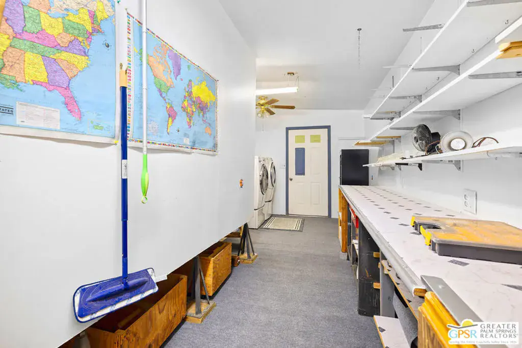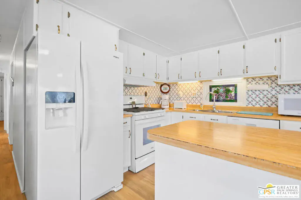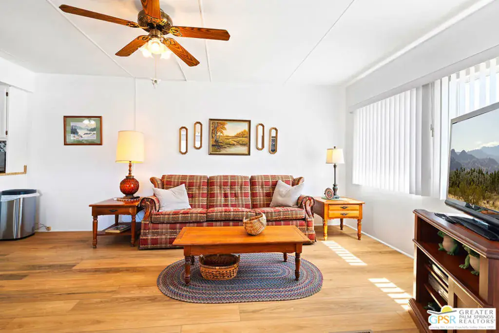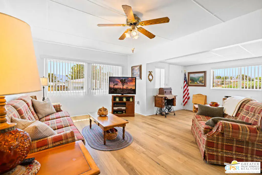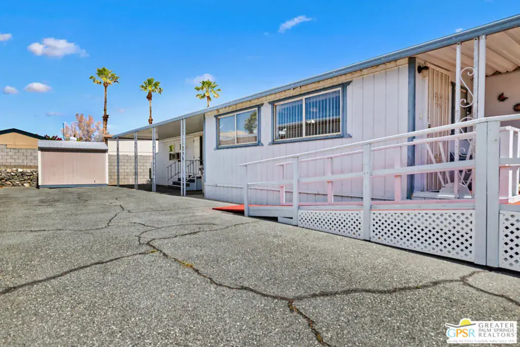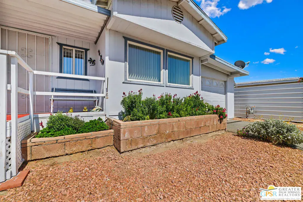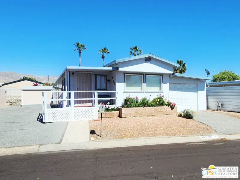 Welcome to your desert retreat in the vibrant 55+ community of Desert Crest Country Club! This meticulously maintained 2-bedroom, 2-bathroom home sits on an oversized lot, offering ample space for RV parking and featuring two convenient outdoor storage sheds. The property boasts a spacious add-on garage complete with a workshop area and additional parking. Inside, you’ll find a beautifully updated interior with new flooring throughout and a freshly repainted finish that exudes modern charm. The kitchen is equipped with new appliances, making it perfect for preparing meals and entertaining guests. For added convenience, the washer and dryer are located inside the home. Furnishings are included per the seller’s inventory, allowing you to move in and enjoy immediately. Desert Crest Country Club provides an active lifestyle with amenities such as a mineral hot springs pool, spa, clubhouse, shuffleboard courts, and a 9-hole par-3 golf course all included in the low HOA fees. The community is conveniently located near Palm Springs, offering easy access to dining, shopping, and entertainment. This property is ideal for those seeking comfort, functionality, and a vibrant community experience. Schedule your private showing today and discover the perfect blend of relaxation and activity at Desert Crest Country Club!