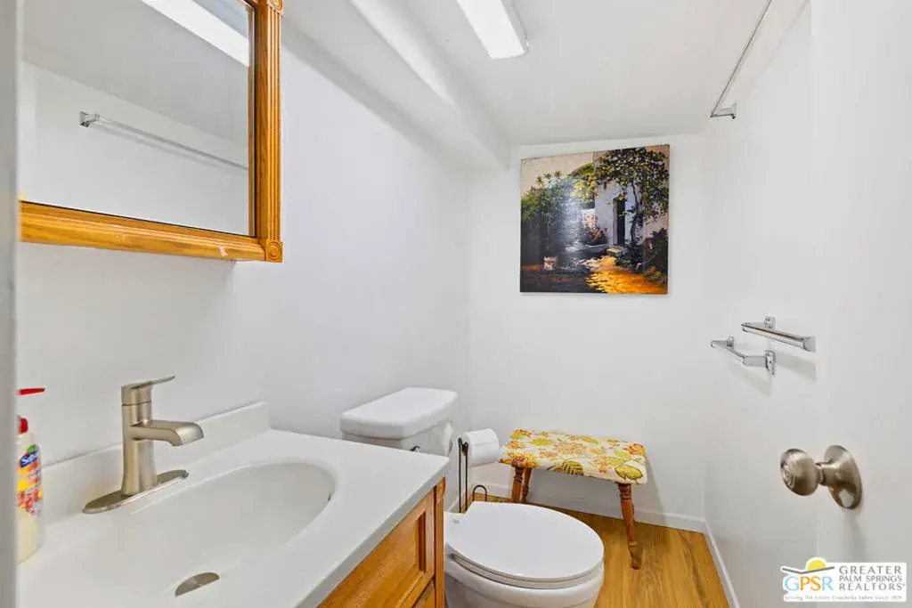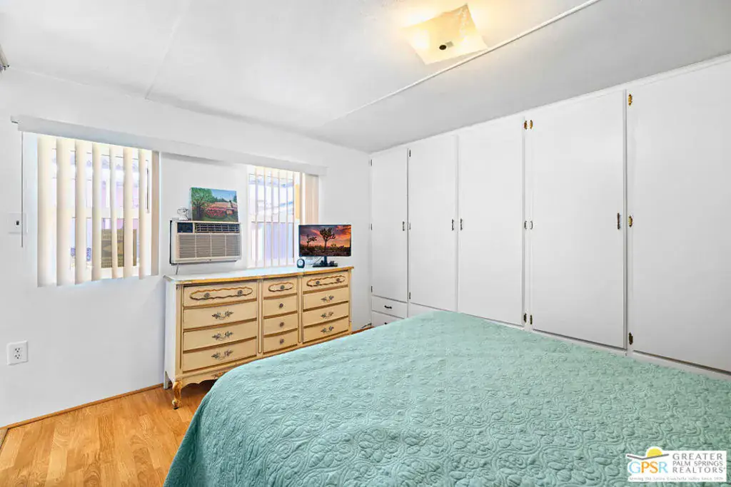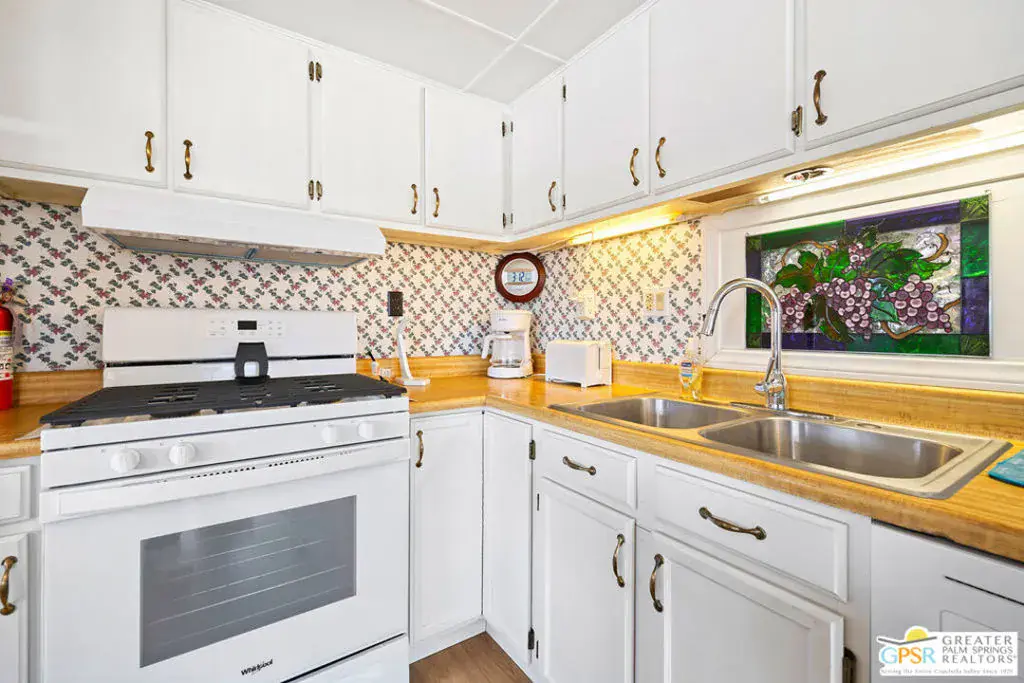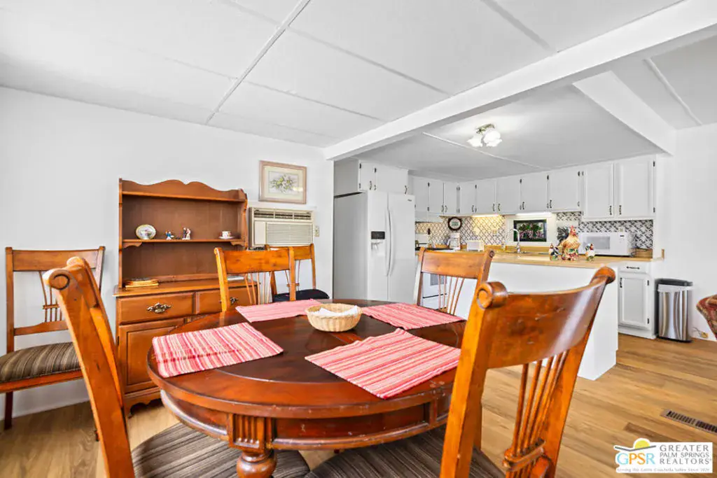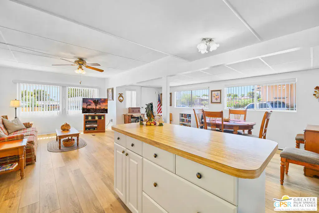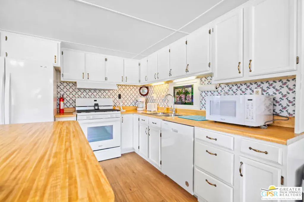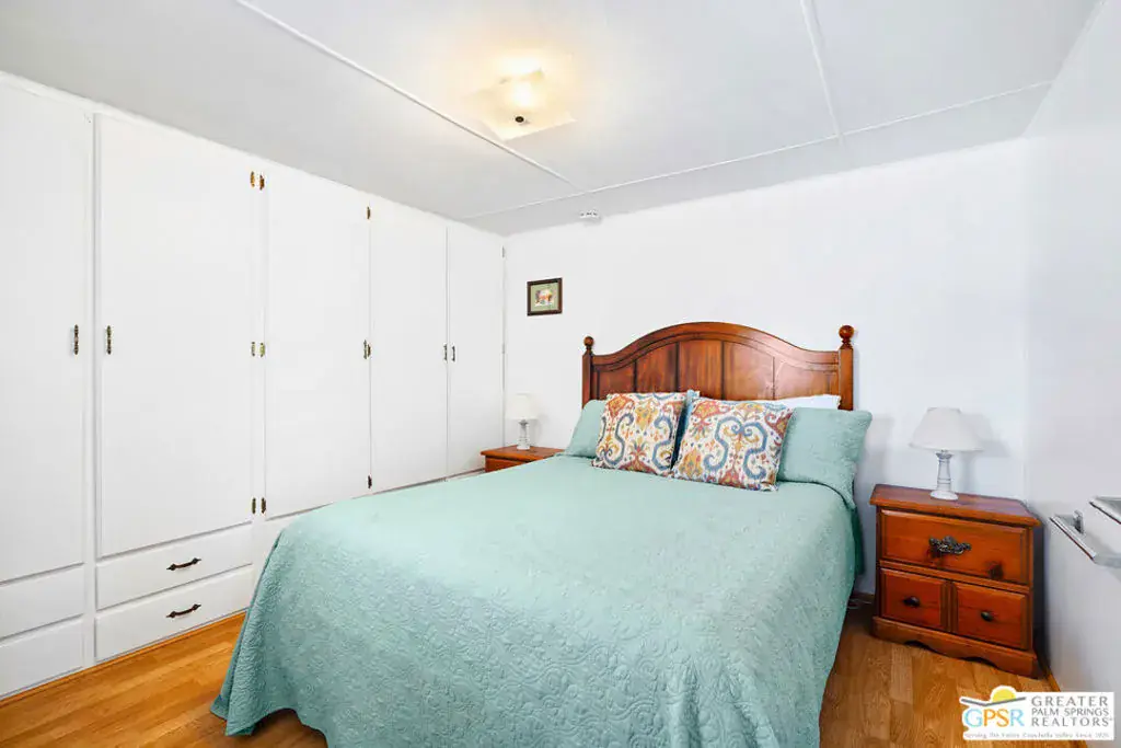 Welcome to your desert retreat in the vibrant 55+ community of Desert Crest Country Club! This meticulously maintained 2-bedroom, 2-bathroom home sits on an oversized lot, offering ample space for RV parking and featuring two convenient outdoor storage sheds. The property boasts a spacious add-on garage complete with a workshop area and additional parking. Inside, you’ll find a beautifully updated interior with new flooring throughout and a freshly repainted finish that exudes modern charm. The kitchen is equipped with new appliances, making it perfect for preparing meals and entertaining guests. For added convenience, the washer and dryer are located inside the home. Furnishings are included per the seller’s inventory, allowing you to move in and enjoy immediately. Desert Crest Country Club provides an active lifestyle with amenities such as a mineral hot springs pool, spa, clubhouse, shuffleboard courts, and a 9-hole par-3 golf course all included in the low HOA fees. The community is conveniently located near Palm Springs, offering easy access to dining, shopping, and entertainment. This property is ideal for those seeking comfort, functionality, and a vibrant community experience. Schedule your private showing today and discover the perfect blend of relaxation and activity at Desert Crest Country Club!