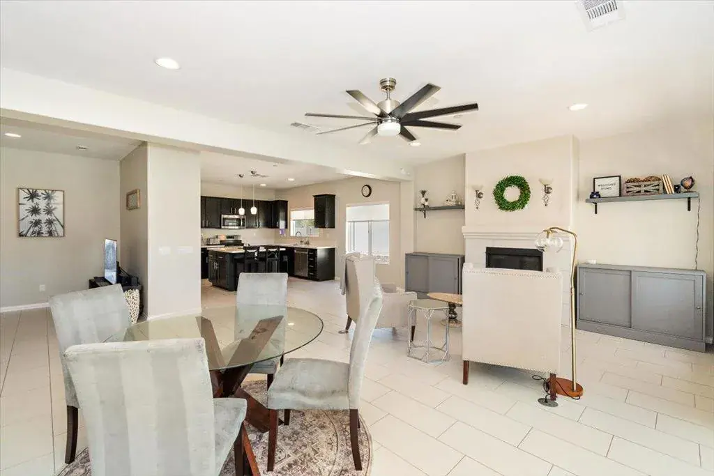 In the gated community of Mountain View, this charming, updated home is available for long-term rental. It features an open floor plan with a den, four bedrooms, and three bathrooms. The home boasts tile flooring throughout and a cozy fireplace. Spacious backyard where you can relax by the pool while taking in the stunning mountain views. It comes fully furnished and is ready for you to move in! The community offers a range of amenities, including basketball and tennis courts, a pool and spas, and a peaceful park–all designed for your enjoyment. Available November 1st 2025-May31st 2026