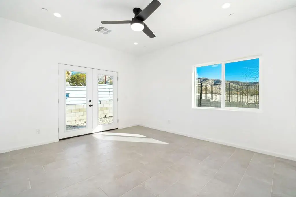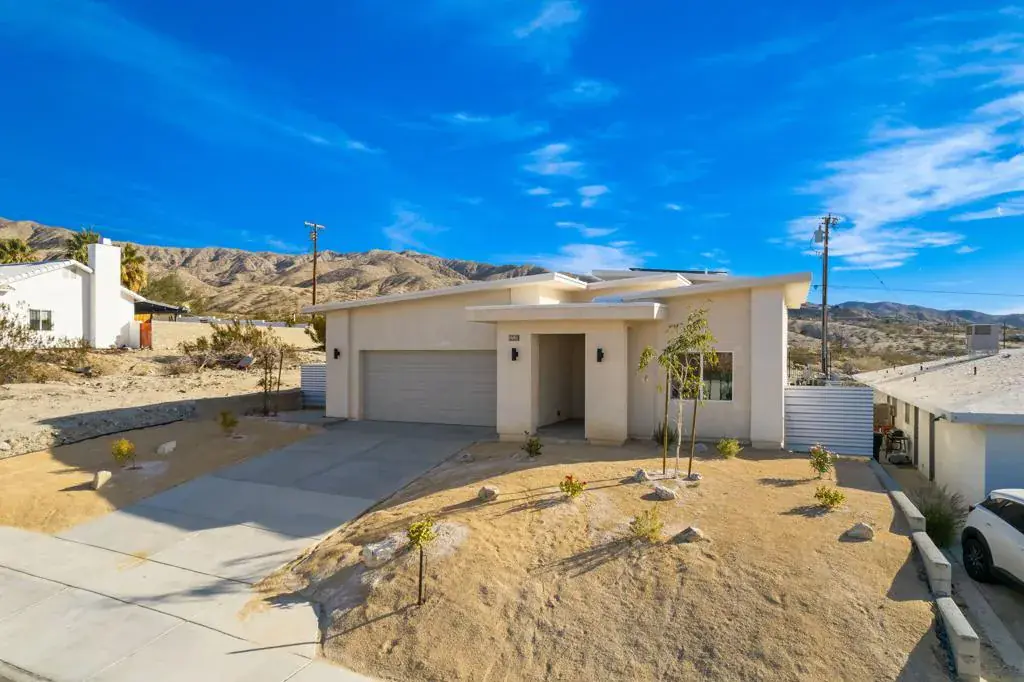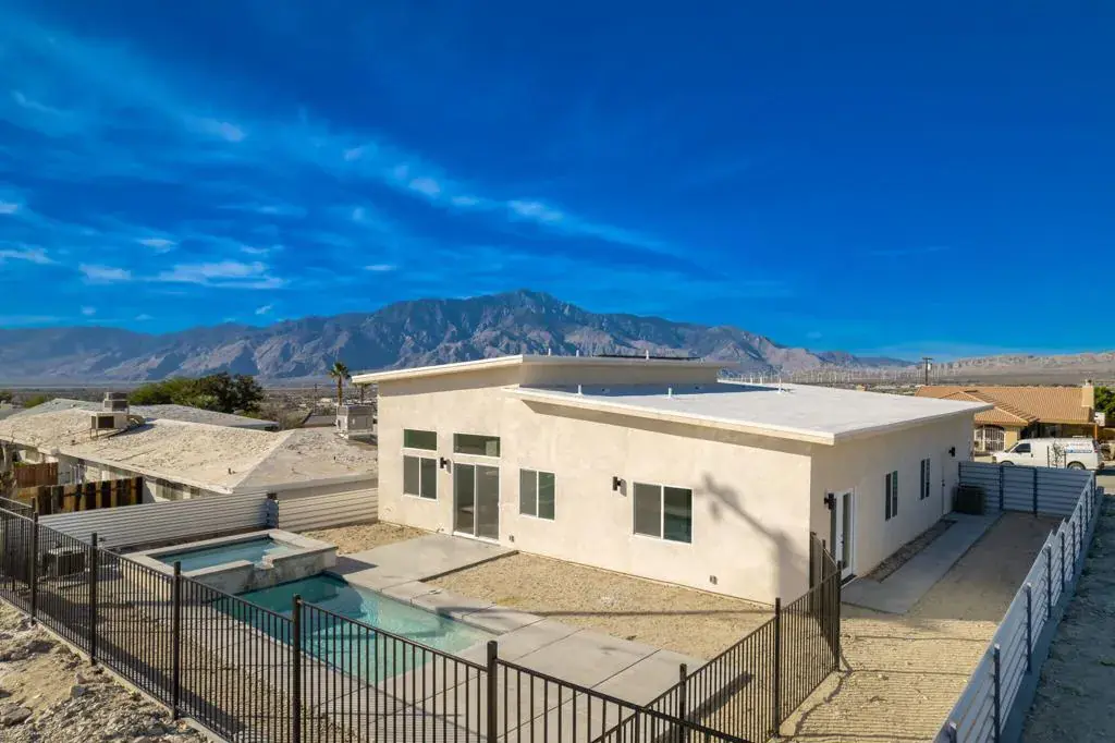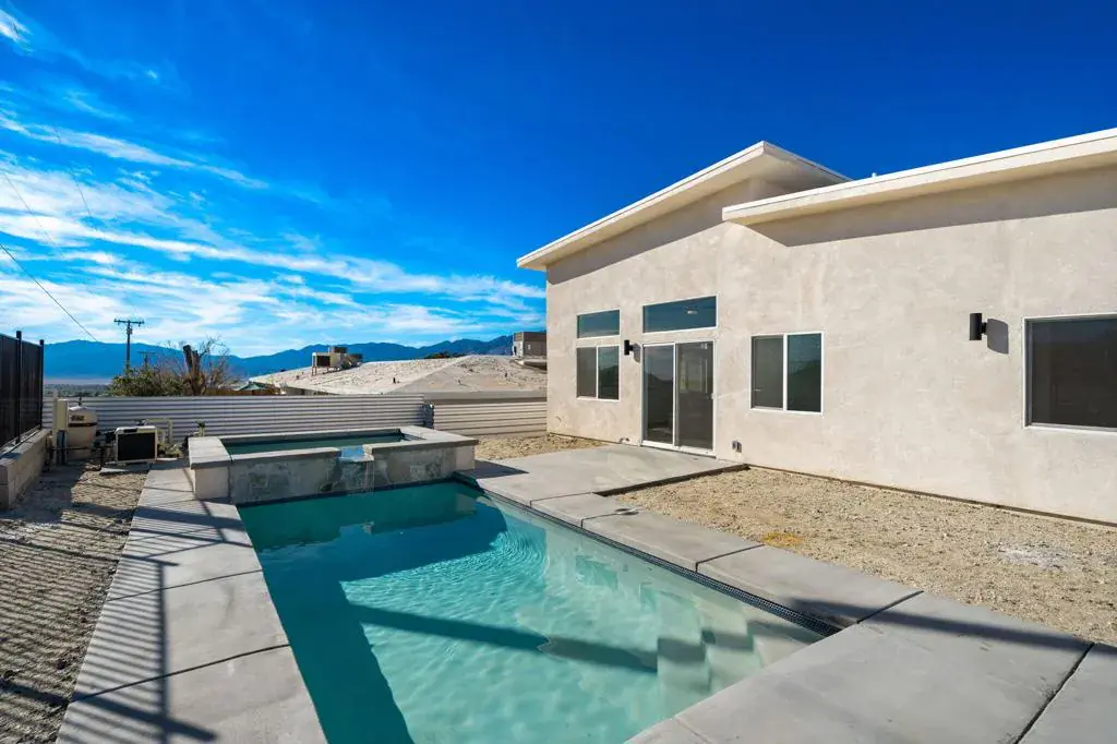 Newer construction Modern / Contemporary with POOL / SPA, CASITA with private entrance and kitchenette, and PAID OFF SOLAR! Modern / contemporary design, tiled flooring throughout, expansive open floor plan, with large windows to let in lots of natural light. NEW Appliance package included in sale: Washer and Dryer, Refrigerator, Dishwasher, and over the stove Microwave. Tall ceilings, desirable area of Desert Hot Springs, short-term rentals ok. 20 min approx. to Palm Springs, short drive to Joshua Tree. No HOA. Furniture negotiable.