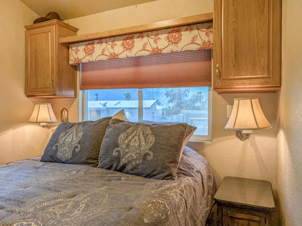 Stunning Views of mountains with pride of ownership and beautiful finishes throughout this spectacular 2006 Laurel Creek Park Model home. Here we have ~600 sq. ft. of living space and features including 1 bedroom, 1 bath, a renovated kitchen and bathroom with granite countertops and real solid wood cabinets, self-closing doors and drawers, under cabinet lighting, newer refrigerator, convection stove, sinks, faucets, water heater, 4-ton ductless system, a ducted evaporative cooler, and so much more. Come find your forever home or getaway vacation spot to Caliente Springs 55+ RV Resort where dreams come true under blue skies and sun. Enrich yourself in the amenities; mineral hot spring fed pool and spas, 8-pickleball courts, tennis courts, 9-hole golf course, planned water activities and a fun active community. Lot is not owned; space rent is $707. Easy lender finance (OAC).