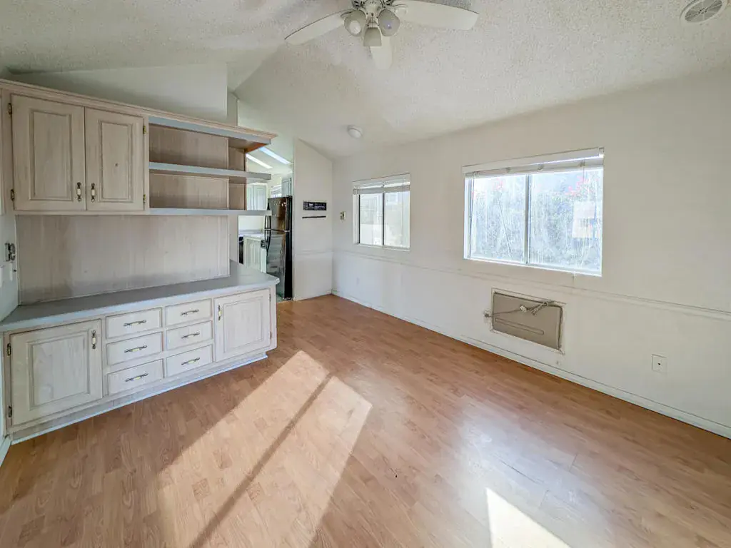 Great Opportunity! Steps to the Clubhouse, this listing presents a 2-bedroom, 1991 National Park Model home with low rents at the esteemed 55+ Caliente Springs Resort. The residence offers wood-style flooring throughout, a dedicated laundry room outfitted with a stack washer and dryer, and a generous, private backyard featuring fruit trees and peaceful serenity, a large shed for storage alongside picturesque views of Mt. San Jacinto and surrounding hills. Residents have access to a range of amenities, including a 9-hole golf course, mineral-fed hot springs pool and spas, chapel services, and additional facilities. The property is move-in ready and provides a versatile space suitable for personal customization to meet your design preferences. Please note that the lot is not owned; monthly space rent is $707. Make offers!
