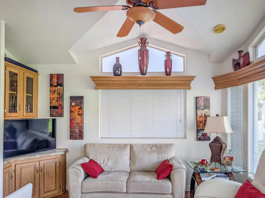 Caliente Springs Resort is an exclusive, gated community for ages 55 and up. This spotless 2004 Cavco Park Model offers around 550 sq. ft. of living space with one bedroom and one bathroom. It sits on the lush 8th hole of the golf course, surrounded by beautiful local scenery, mountains, and ponds–all of which you can enjoy from your fully covered deck, perfect for relaxing in peace. Updates include new flooring, a new deck, an upgraded bathroom with a tiled walk-in shower and an energy-efficient toilet, a walk-in closet, paved parking, landscape irrigation, and more. A golf cart is also included for convenient travel around the park. Community amenities feature 8 pickleball courts, tennis courts, laundry facilities, a library, fitness center, a 9-hole golf course, and mineral-fed hot springs pool and spas. In addition to the impressive features of the home and resort, residents enjoy an active social calendar with group activities, classes, and gatherings that foster a warm sense of community. The resort’s gated security offers peace of mind, while its prime location provides convenient access to shopping, dining, and local attractions, making everyday living both comfortable and enjoyable. Whether you’re seeking a tranquil retreat or an engaging lifestyle, Caliente Springs Resort combines the best of both worlds for those looking to embrace the next chapter in a vibrant 55+ setting. Lot is not owned; space rent is $950 per month.