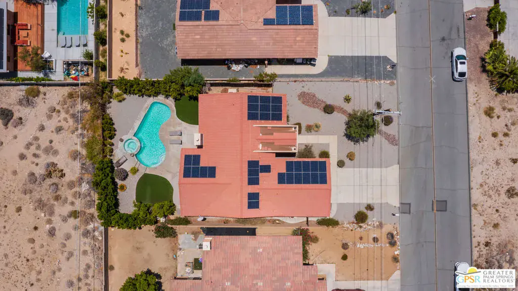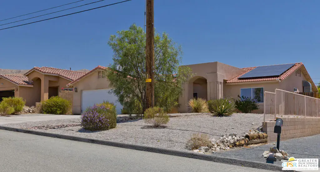 Desert Living Meets Modern Luxury! Discover laid-back desert living in this beautifully updated 3-bedroom, 2-bath retreat nestled in north of Hacienda in Desert Hot Springs. Thoughtfully remodeled and available furnished, this home blends premium finishes, resort-style amenities, and energy efficiency into one incredible value. Step inside to a spacious open floor plan with soaring ceilings, perfect for relaxing or entertaining guests. The chef’s kitchen boasts stainless steel appliances, ample prep space, and seamless flow into the dining and living areas making everyday living feel elevated and effortless. Outdoors, unwind in your private backyard oasis featuring a sparkling pool and spa, ideal for soaking up the desert sun year-round. Eco-conscious buyers will appreciate the energy-efficient upgrades, including solar panels and central A/C, offering both comfort and cost savings. An attached 2-car garage provides convenience and additional storage. Whether you’re looking for a full-time residence, seasonal escape, or a smart investment, this turnkey home delivers on both luxury and value in one of Desert Hot Springs best locations. Just minutes from downtown Desert Hot Springs, local spa resorts, and a short drive to Palm Springs, this home offers tranquility and accessibility in equal measure.