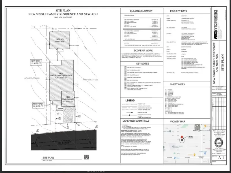 New construction opportunity in Desert Hot Springs! This planned home will offer approximately 1,781 sq. ft. of living space with a well-designed floor plan. Plans are complete and ready for submission to the city, providing a great opportunity for a buyer or investor to move the project forward.