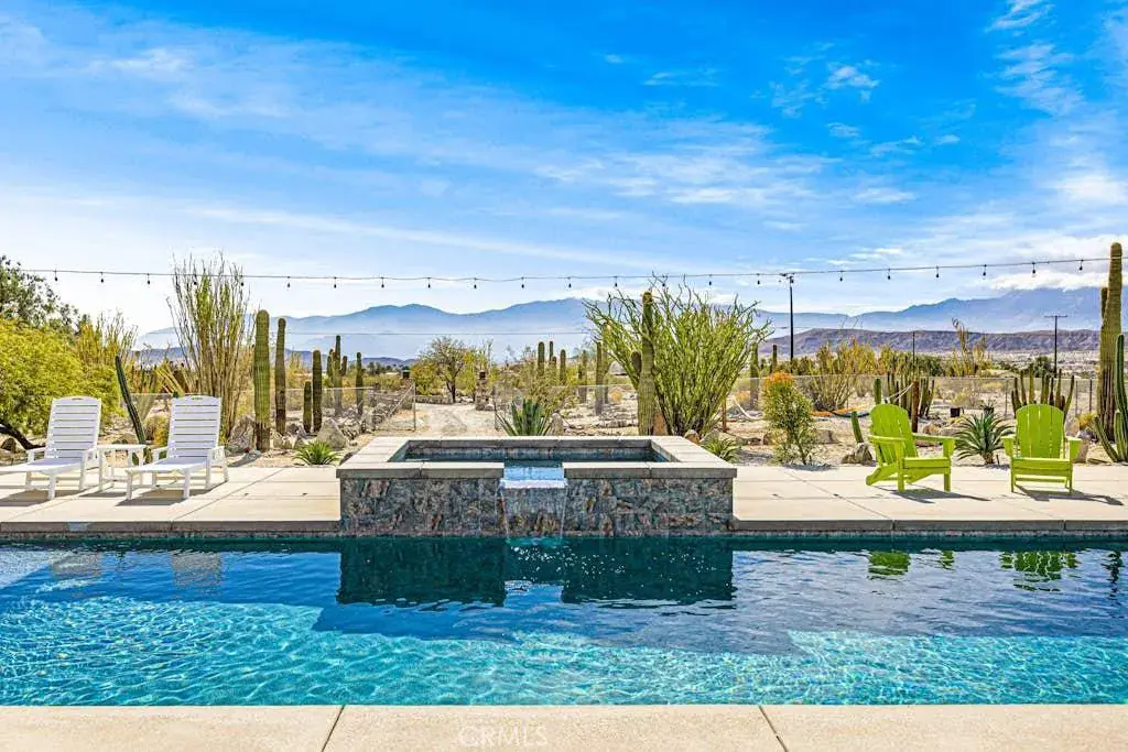 Enjoy 4.5 acres of private paradise at this incredible sun-bathed oasis. Surrounded by stunning mountain and desert views, this Ranch-style home boasts amazing outdoor space with a large heated salt water pebble tech private pool and spa with a large sun deck. The pool and spawere built in 2022. Relax and unwind from the daily grind poolside, watching birds nest in the expansive succulent garden featuring dozens of giant sagueros and other desert flora. The built-in BBQ and covered patio completes the elegant outdoor space.