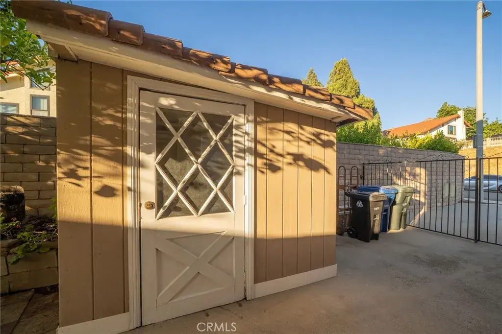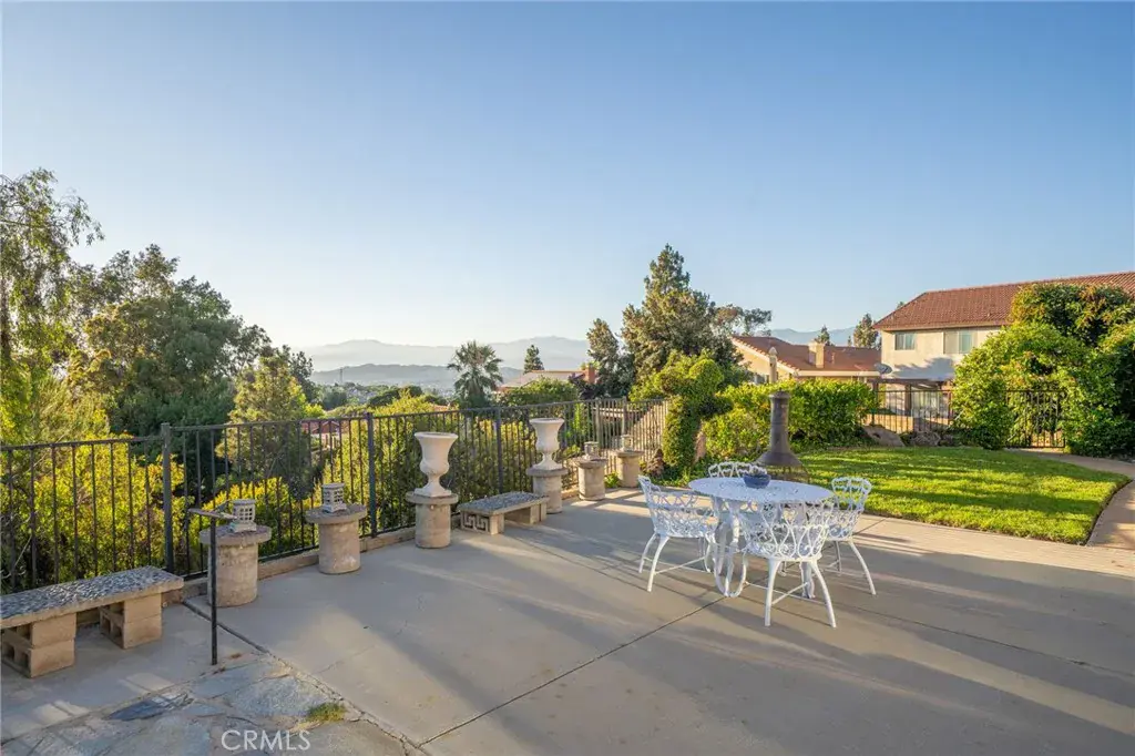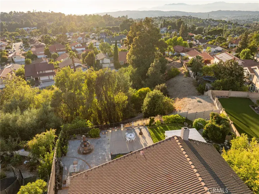 This stunning tri-level home is nestled in the hills of Diamond Bar. Offering breathtaking panoramic views and perfectly positioned to capture gorgeous sunsets from the serene backyard or the private upstairs balcony. This residence includes a highly desirable downstairs bedroom and full bath, ideal for guests or multi-generational living. When entering the home you step into the formal living room where rich wood flooring and custom crown molding add timeless elegance and character. Step down into the formal dining area which leads you to the kitchen and family room, perfect for entertaining. The kitchen is a true delight, featuring oak cabinetry, granite countertops, custom backsplash, stainless steel appliances including a 5-burner stove, brand new sink, faucet, and garbage disposal, also an eat-in dining area. Upstairs, the primary suite is a peaceful retreat with double-door entry, two large closets (including a walk-in), and additional hidden storage closet behind the paneled wall, and a private balcony with unobstructed views of the surrounding hills. The ensuite bathroom boasts dual sinks, and a jetted bathtub with a window to take in the gorgeous view. Two additional guest bedrooms and a full bathroom with a tub/shower combo complete the top level. Accessibility features are present in every bathroom, promoting safety and ease of movement. Thoughtfully upgraded, the home includes dual-paned windows, a 4-ton AC unit, stair climber to provide added ease for navigating between levels, new security system with cell phone access, indoor laundry, and the home has been repiped with PEX plumbing. The downstairs bathroom features a walk-in shower with new brass fixtures. Outside you will enjoy a tranquil and private front courtyard with a mature lemon tree, a covered backyard patio, and a lower terrace that could be perfect for a future jacuzzi or fire pit. The backyard is adorned with an array of fruit trees including orange, avocado, peach, nectarine, pomegranate, and loquat. Landscaped beautifully with a large fountain, it is a retreat you never have to leave home to enjoy. A 2-car garage and extended driveway offer plenty of parking, as well as additional parking that is readily available along the street with long stretches of curb for ample space for your guests. Located near top-rated schools, shopping, dining, and easy access to the 60 and 57 freeways, this exceptional home offers comfort, convenience, and stunning natural beauty.