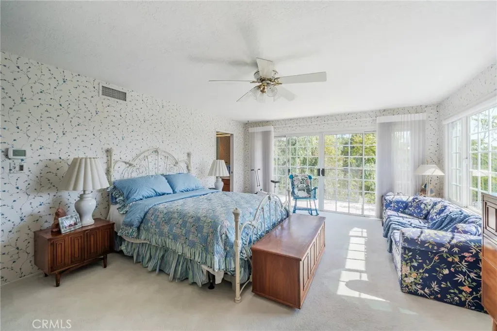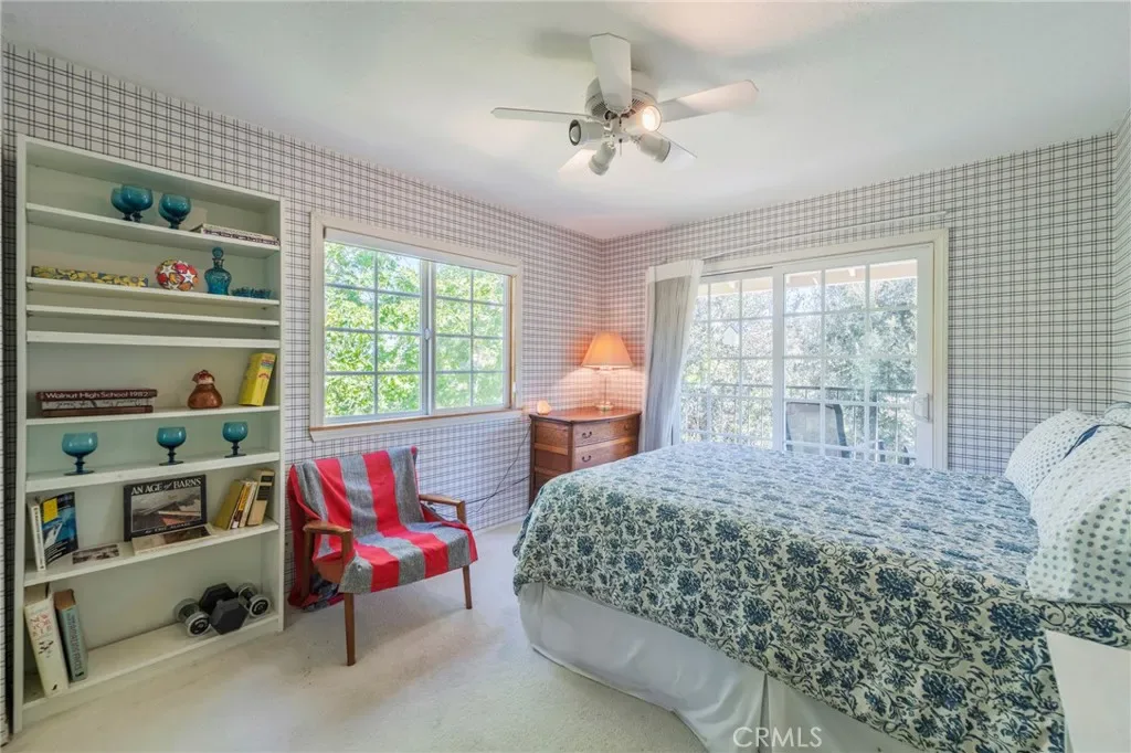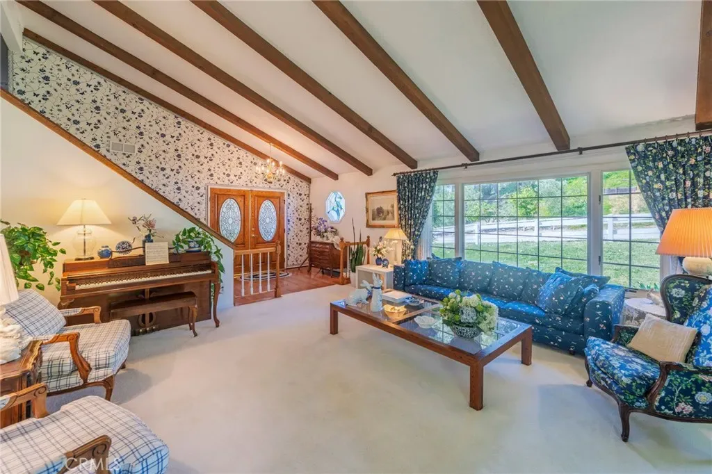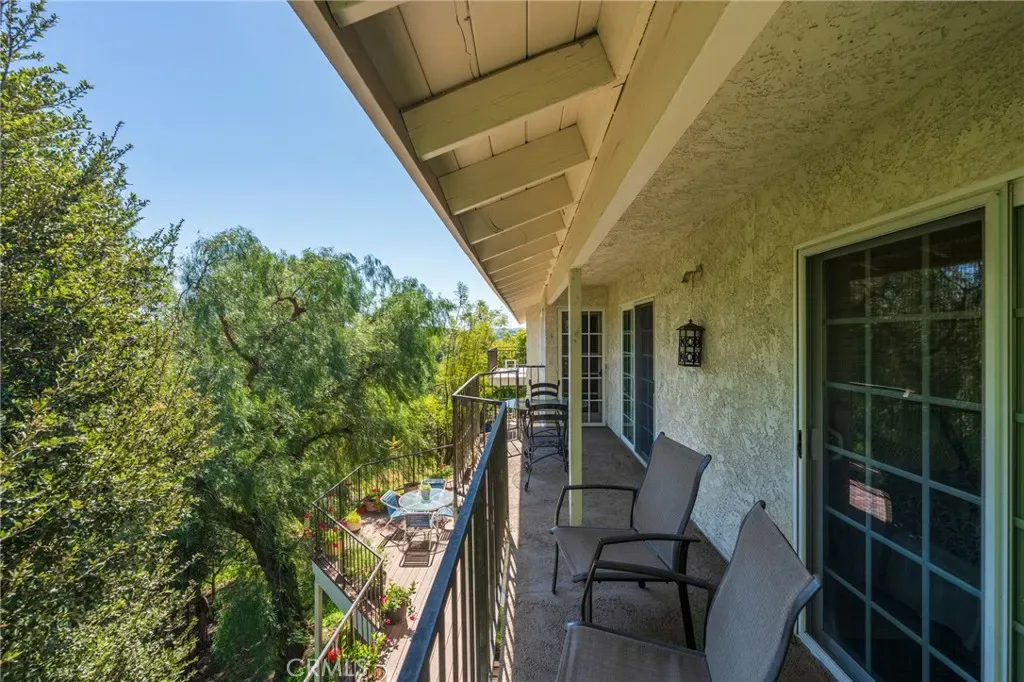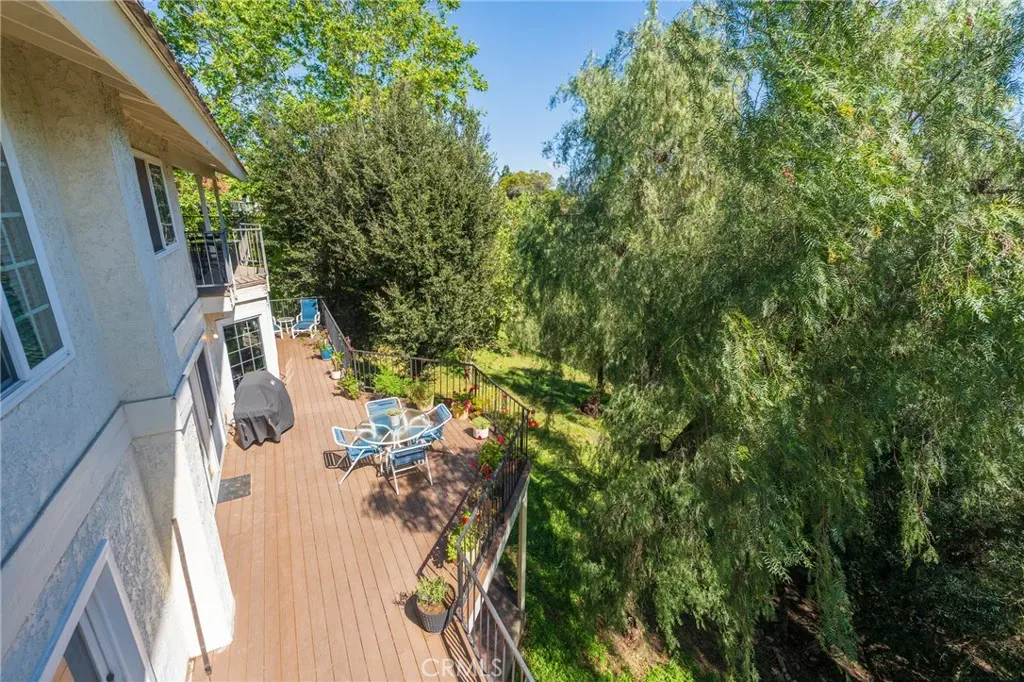 Nestled among the rolling hills of Diamond Bar’s Country Estates, this 3,378 sq ft custom tri-level home offers a lifestyle immersed in nature. Set on more than an acre adorned with picturesque trees, the property is surrounded by the preserved native beauty of California landscape. Inside, the formal living room welcomes you with a dramatic wood-beamed ceiling and charming fireplace. Just below, the formal dining room is surrounded by windows that frame the landscape and make every gathering feel connected to the outdoors. The family room, kitchen, and breakfast nook continue the experience, offering sweeping views of the trees and hills beyond, along with a deck that runs the length of the home. Five bedrooms and four bathrooms are thoughtfully arranged across the tri-level design, with balconies off all of the bedrooms providing peaceful places to enjoy the scenery. A hallway nook creates the perfect space for a small library, office, or craft room, and the home offers abundant storage throughout. Adding exceptional versatility, the attached ADU provides ideal space for guests, multigenerational living, or rental income. It features a separate living room, bedroom, bathroom, kitchen, and two walk-in closets. Both the main living level and ADU are accessible from the garage, offering convenience for those wishing to avoid stairs. Outdoors, the natural landscape showcases Pepper, Sycamore, and Live Oak trees along with the fragrant beauty of sage, monkey flower, buckwheat, California poppies, and orange trees. Bird lovers will enjoy the many colorful hummingbirds and various birds who also call this place home An outdoor gardening room allows you space to continue preserving this rare native land, while an additional driveway provides extra parking for gatherings. Residents of Country Estates enjoy access to a heated swimming pool, badminton courts, basketball courts, tennis courts, pickleball courts, and scenic walking trails.