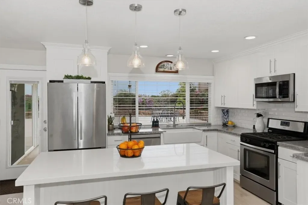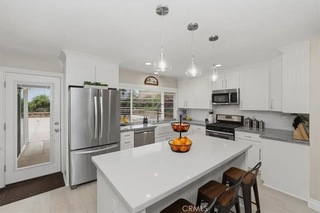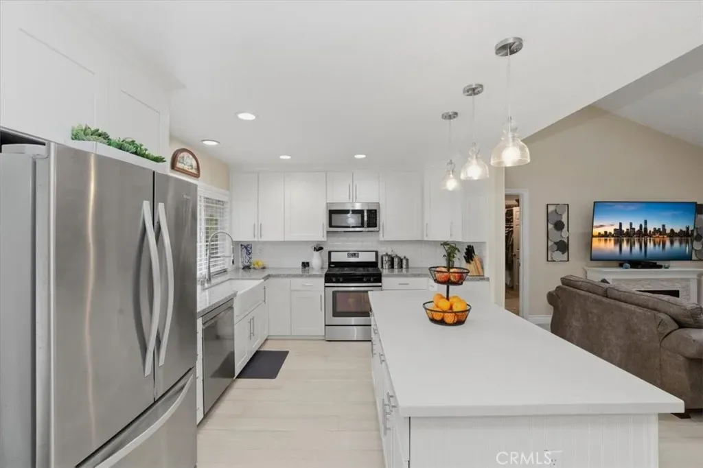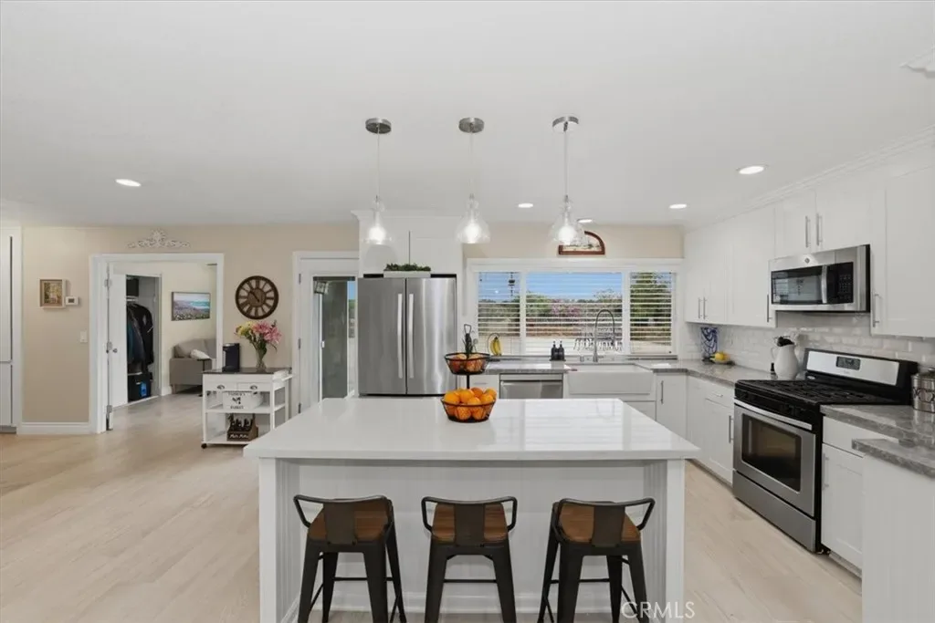 The heart of the home is the gourmet kitchen, a true chef’s delight. It boasts new cabinets, premium appliances, a gorgeous farmhouse sink, quartz countertops, and a large central island—ideal for entertaining family and guests.