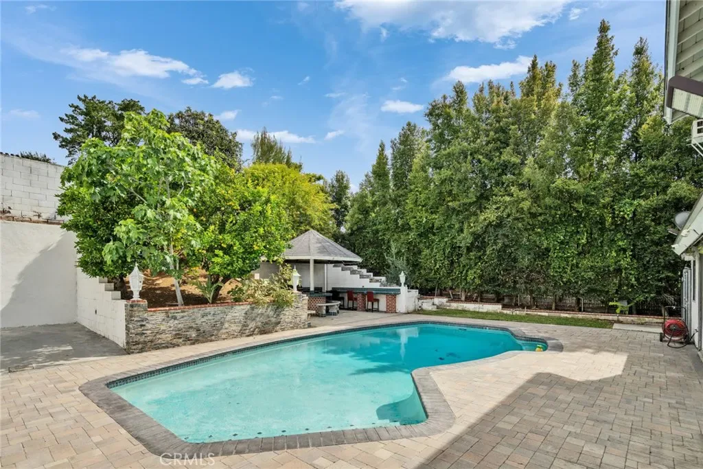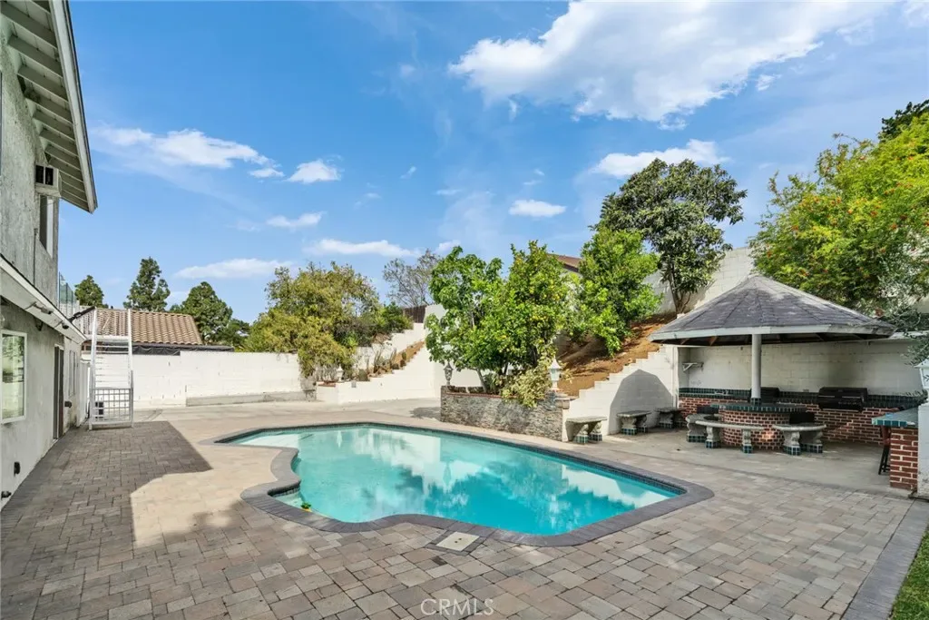 Step outside to your private pool oasis — surrounded by beautifully landscaped grounds featuring new pavers around the pool area, a stylish covered patio deck with glass walls, and clean concrete side yards. The expansive backyard is an entertainer’s dream, complete with a large gazebo, built-in BBQ grill, stove, and entertainment table — everything you need to host in style. The lush yard is also home to a wonderful variety of fruit trees including lemon, orange, avocado, loquat, pomegranate, and more — a true garden paradise.
