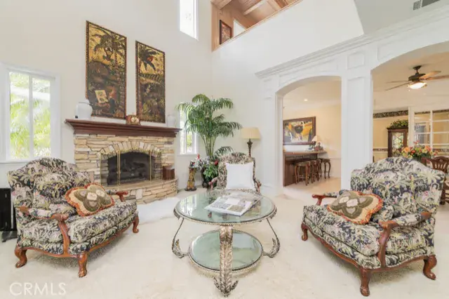 The formal living and dining rooms provide generous spaces for gatherings, while the family room is equipped with a custom-built-in entertainment center and is seamlessly connected to the large open kitchen, breakfast nook, a couple of cozy conversation sitting areas, and a gorgeous wet bar with a table for wine tasting.