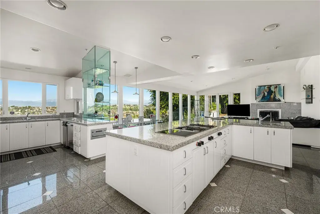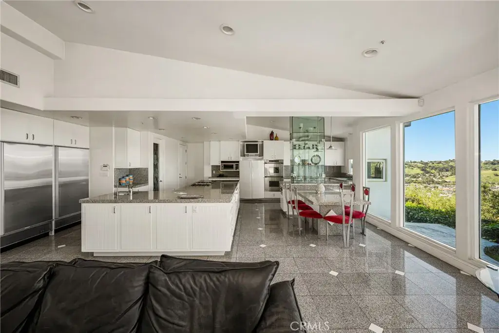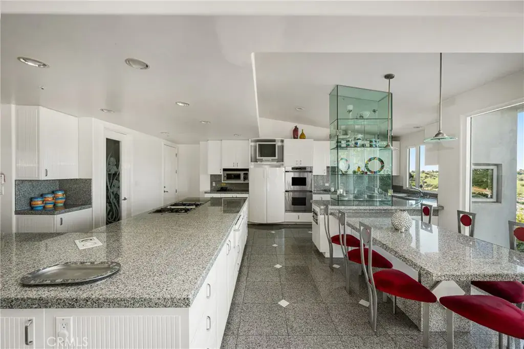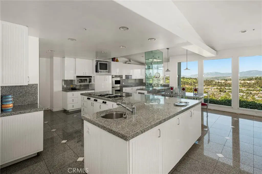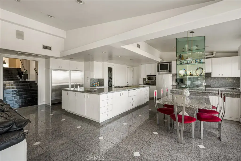 Designed for both grand-scale entertaining and everyday living, the residence offers formal living and dining rooms along with multiple family rooms that flow effortlessly to the outdoors. The chef’s kitchen is thoughtfully appointed with a large center island, white lacquer cabinetry, granite countertops, Sub-Zero refrigerator and freezer, Gaggenau fryer, charcoal grill and cooktop with downdraft vent, Dacor double ovens, NuTone built-in food center, breakfast nook, and a generous walk-in pantry.