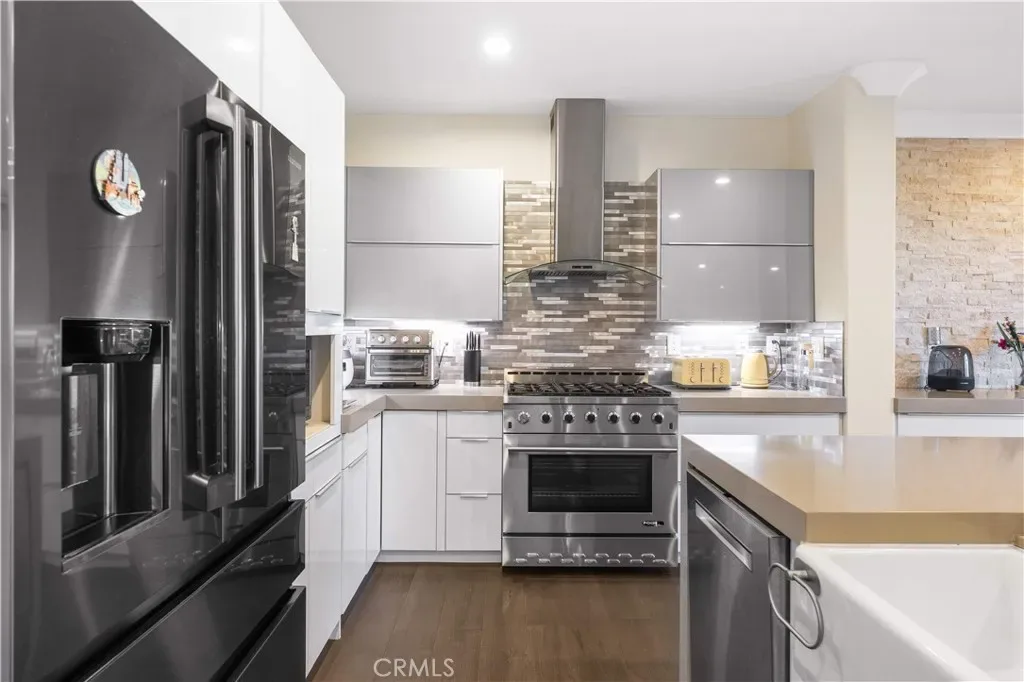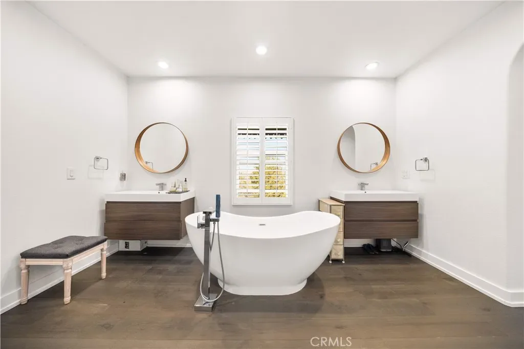 Wow! wow! wow! Look no further but this Top of the line builder’s model home with exceptional view and location!!! Elevate your lifestyle here in The Vantage Point, one of the newest and most coveted communities in Diamond Bar. The entire unit enjoys the amazing abundance of natural lighting due to its end unit location!!! This 4 bedroom, 5 bathroom home offers a high-class contemporary style, making it one of the most desirable condos in town!!! Showcasing over $130,000 in quality upgrades and amazing view of the city lights, its notable features include: LED recessed lighting throughout, plantation shutters, engineered wood floor, a gorgeous open concept kitchen overlooking the dining and living room, and fully remodeled bathrooms with a timeless modern touch. Tiles, vanities, mirrors, flooring, paint, and fixtures were hand selected for a beautiful customized look. Kitchen features countertops with 3.5 inches of quartz slab, a built-in dry bar perfect to display artwork, your finest China, or simply use as serving counter for meals and parties. Notice the unique, handpicked mosaic backsplash that compliments the stainless steel appliances, and color theme in this space. You’ll love that each room is a Master designed with its own private bathroom. The Ground floor offers direct garage access, a spacious laundry room, and is the location of the first Jr. Master. Use this area as an office, work out space, or guest room. The main floor showcases the open floor plan with the kitchen, dining area, powder room, breezy patio, and living room. Enjoy beautiful views during meals or relaxing outside. The second Jr. Master has a 3/4 bathroom ideal for in laws. Up on the 3rd floor is a quaint loft with built-in shelving. If you’re a bibliophile, turn it into a mini-library or study. As you walk into the master suite, you are met with a stream of natural light and view of the city. Soak in the master bath’s free standing tub and enjoy the huge vanity area with his/her sinks. This home is well-cared for, stylish, and ready for entertaining. The highly rated Walnut School District is designated to this Diamond Bar community, and it’s a short walk to the Target Center.