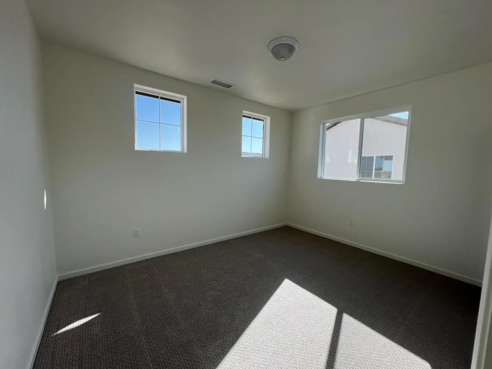 Upstairs, you’ll find two more bedrooms and a third full bathroom, along with a flexible loft or office space ideal for remote work, a media area, or a playroom. The open staircase and dramatic ceilings create a bright, airy feel, complemented by large windows that fill the space with natural light.