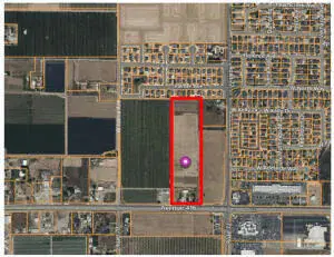 FOR SALE; 9.56 Acres with fantastic road frontage, close to one of the busiest intersections in the city limits of Dinuba. This parcel has 2 zoning ordinances; the Southern portion is zoned community commercial and Northern portion residential (R-1-6). The parcel neighbors gas stations, Ed Dena’s Auto Dealership, Walmart, Tractor Supply, Dollar Tree, many fast food chain restaurants, with much more development coming soon in the area. Buyer to verify future building projects with Dinuba City Council, City Planner, and City Engineer. The older home on the property is 1,734 square feet and is currently rented (home receives water through a domestic well). There is also an existing agriculture pump and well which isn’t currently used because the parcel isn’t planted or being farmed. Come see this parcel in person today!